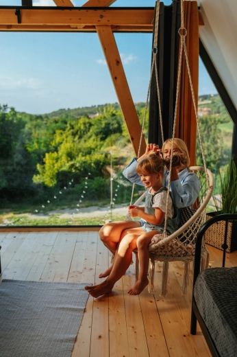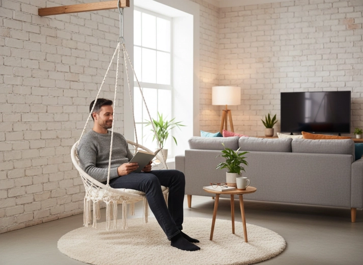 Trwała lina zawieszenia i solidna konstrukcja zapewniają bezpieczne użytkowanie dla całej rodziny podczas relaksu i delikatnego bujania.