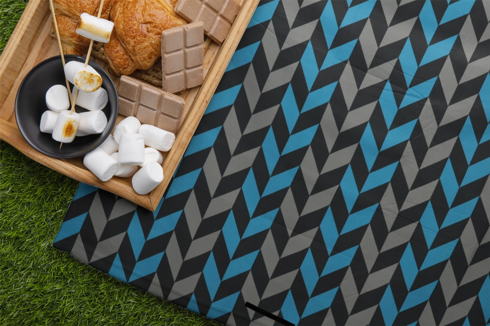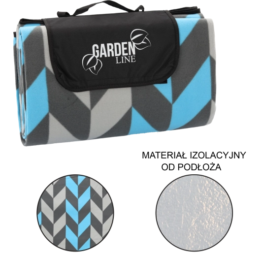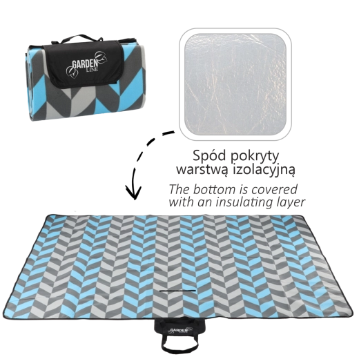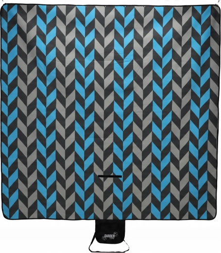 Koc łatwo złożysz do kompaktowego pakunku z klapą na zapięcie, uchwytem i paskiem do przenoszenia. Nowoczesny wzór jodełki w odcieniach niebieskiego i szarości pasuje na każdą okazję i doda Twojemu piknikowi stylu.