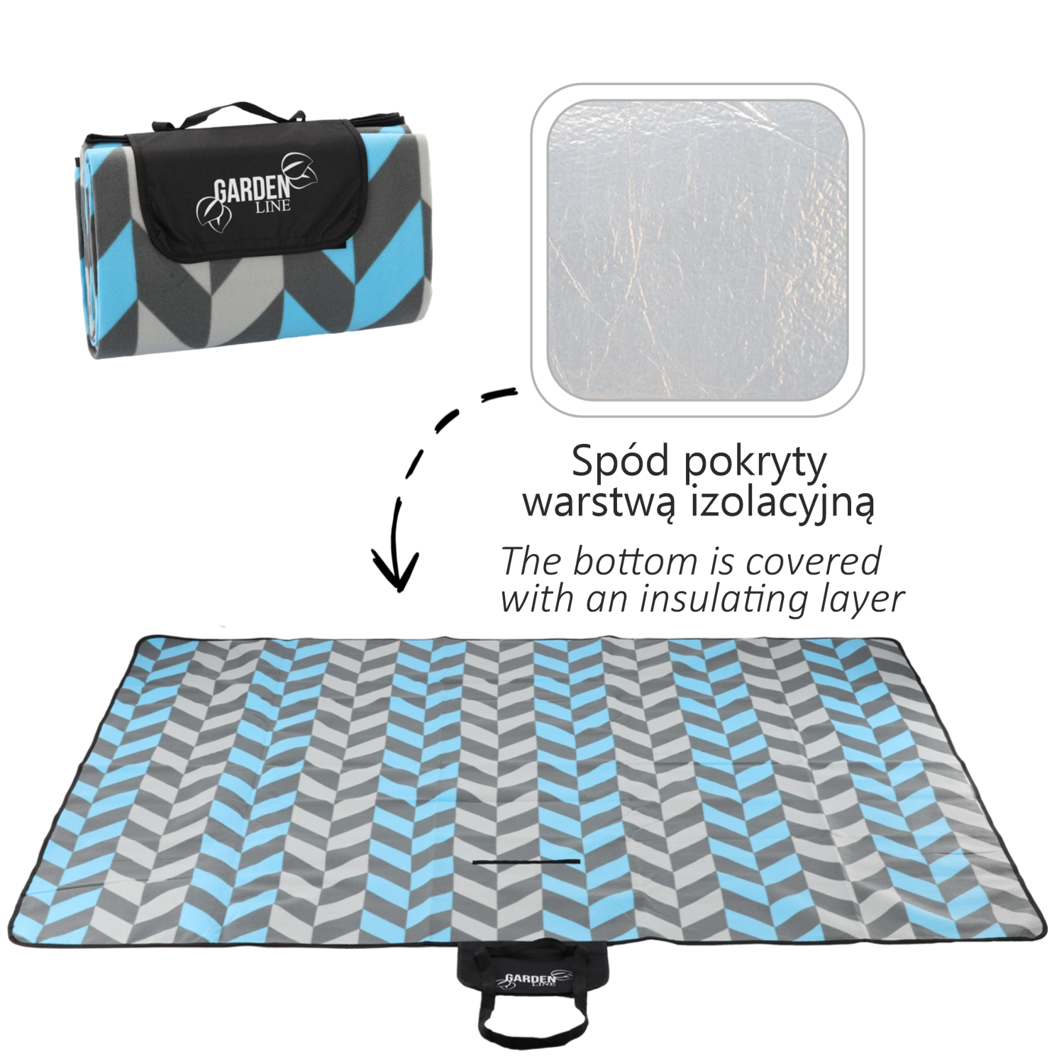 Srebrna aluminiowa warstwa na spodzie niezawodnie chroni przed wilgocią i chłodem, dzięki czemu możesz cieszyć się piknikiem nawet na trawie zroszonej rosą.