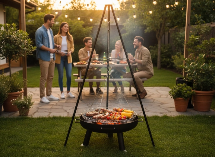 Wytrzymała konstrukcja na trzech nogach pewnie utrzymuje grill na miejscu — w ogrodzie, na tarasie czy podczas biwakowania.
