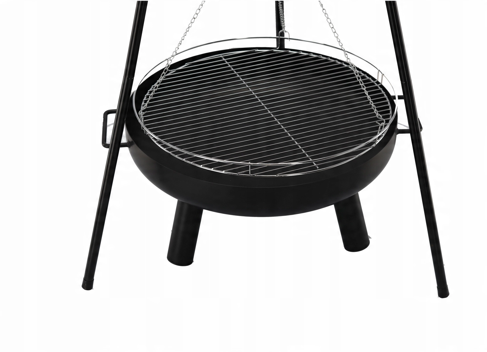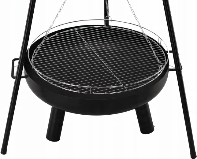 Stabilny trójnóg zapewnia bezpieczne grillowanie w ogrodzie, na tarasie i podczas kempingu. Duża powierzchnia grillowania jest idealna na rodzinne i towarzyskie spotkania, a praktyczne uchwyty na misie ułatwiają przenoszenie i manipulację.
