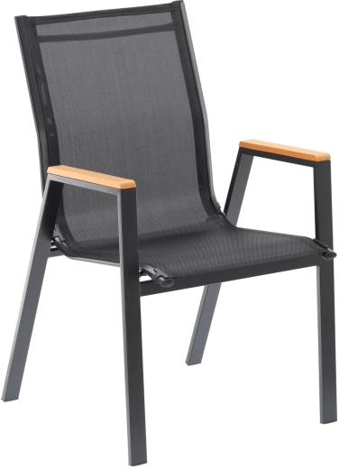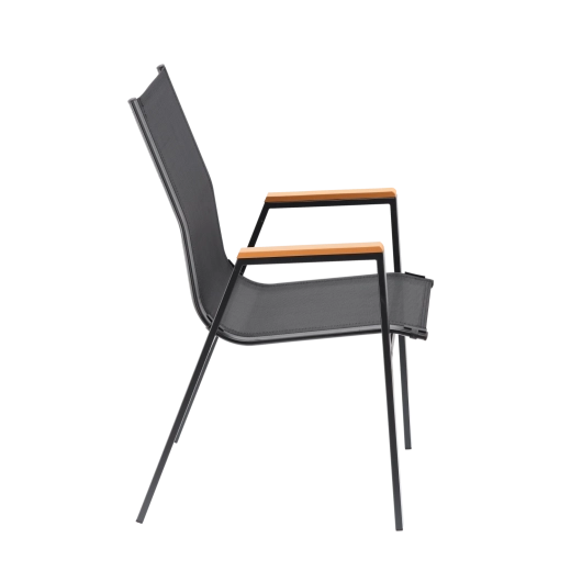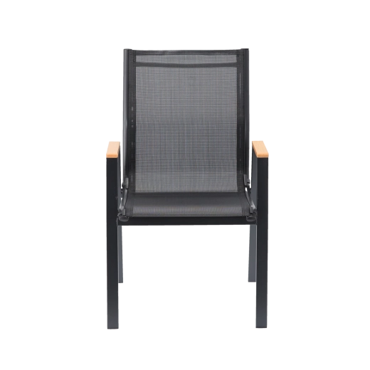 Dzięki ponadczasowej czerni w połączeniu z dekorem drewna doskonale pasuje zarówno do nowoczesnych, jak i klasycznych aranżacji. Łatwo zestawić je z odpowiednimi stołami ogrodowymi i stworzyć spójny, elegancki komplet do spotkań z rodziną lub przyjaciółmi.