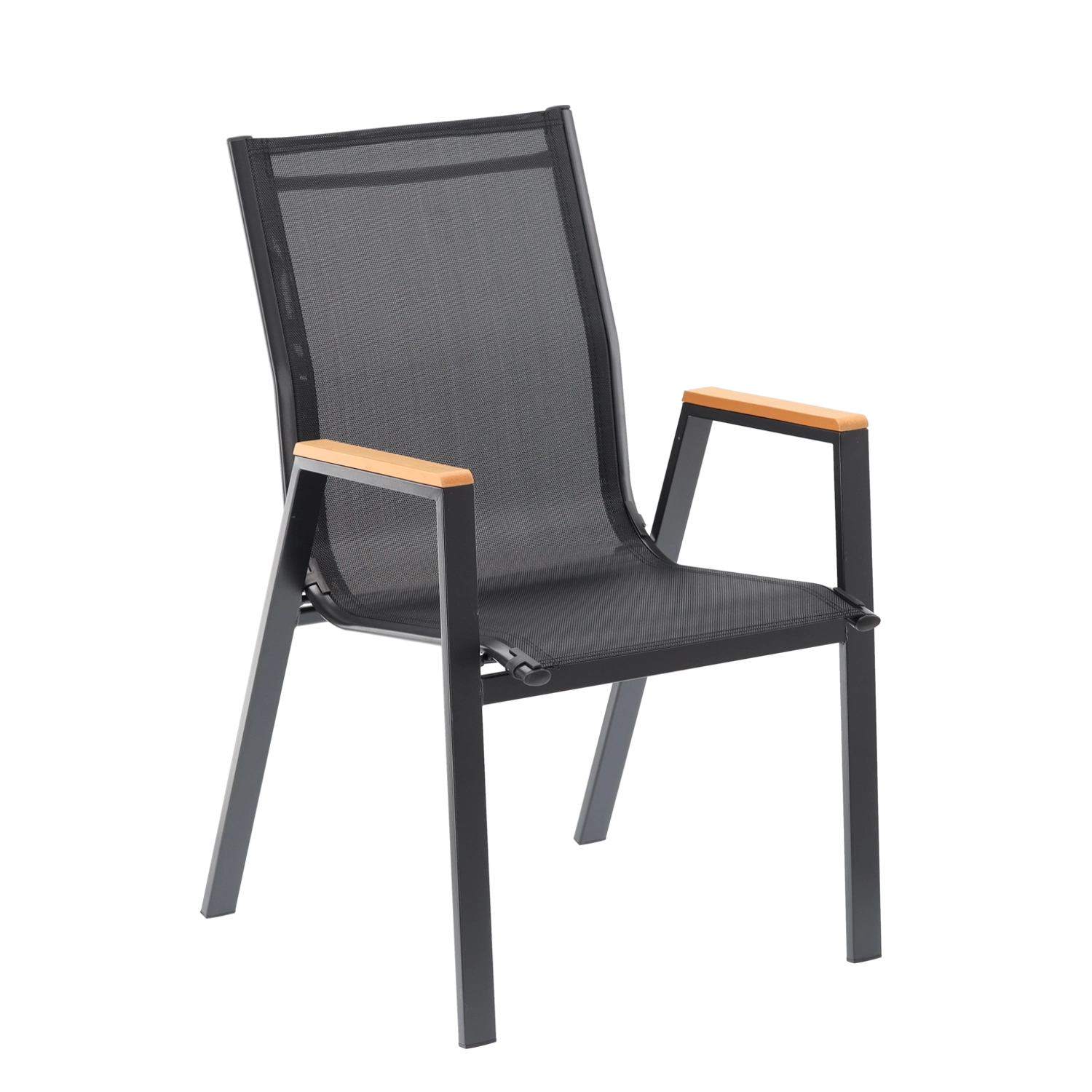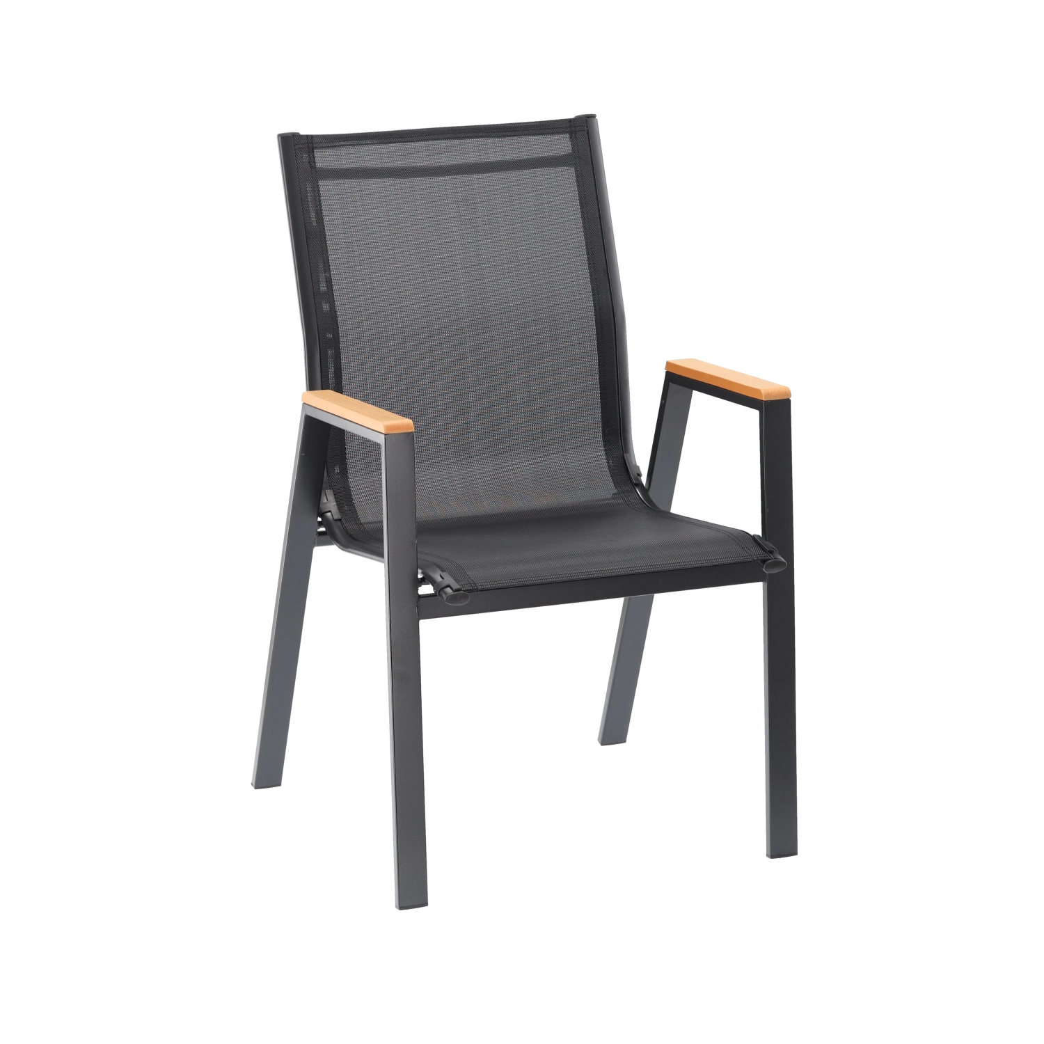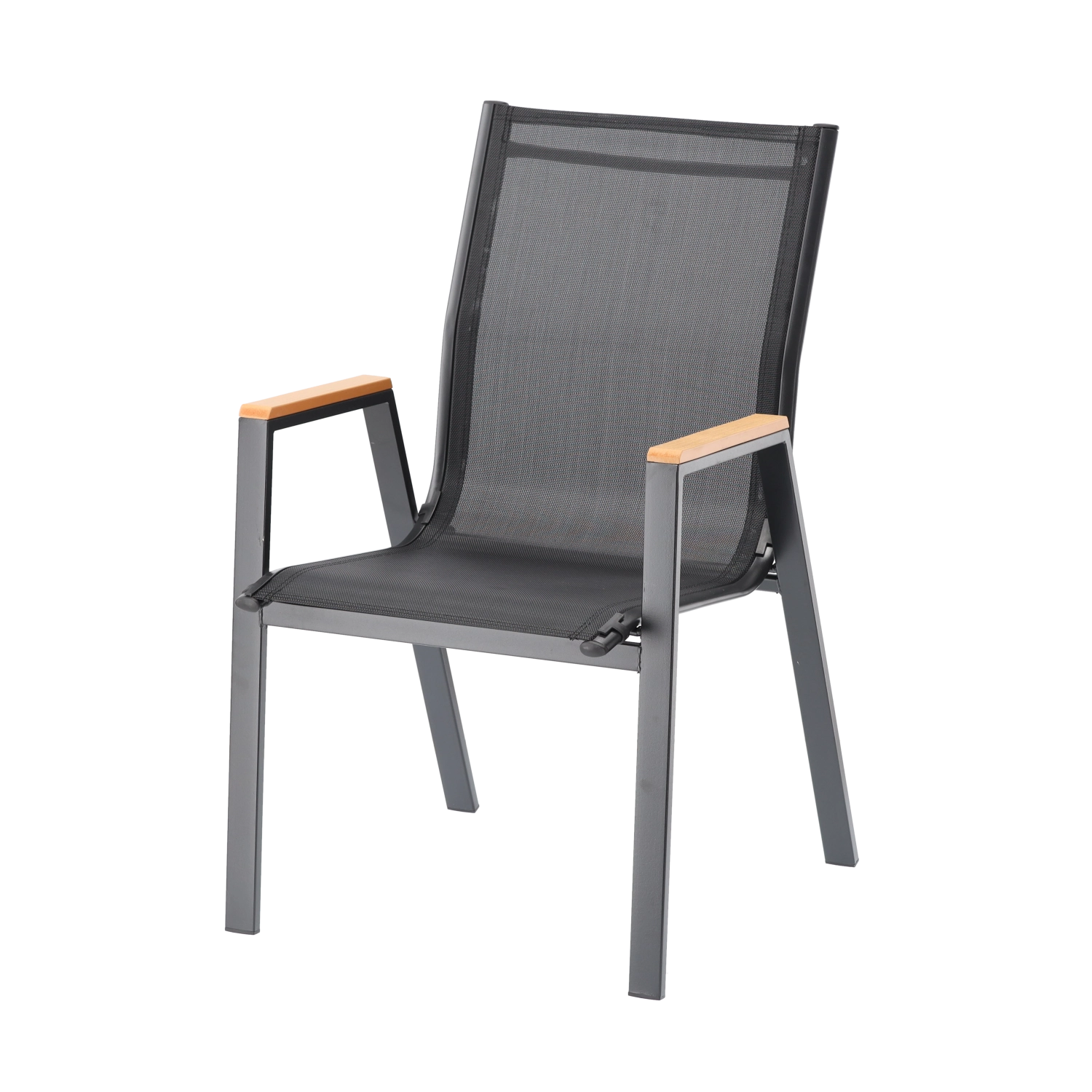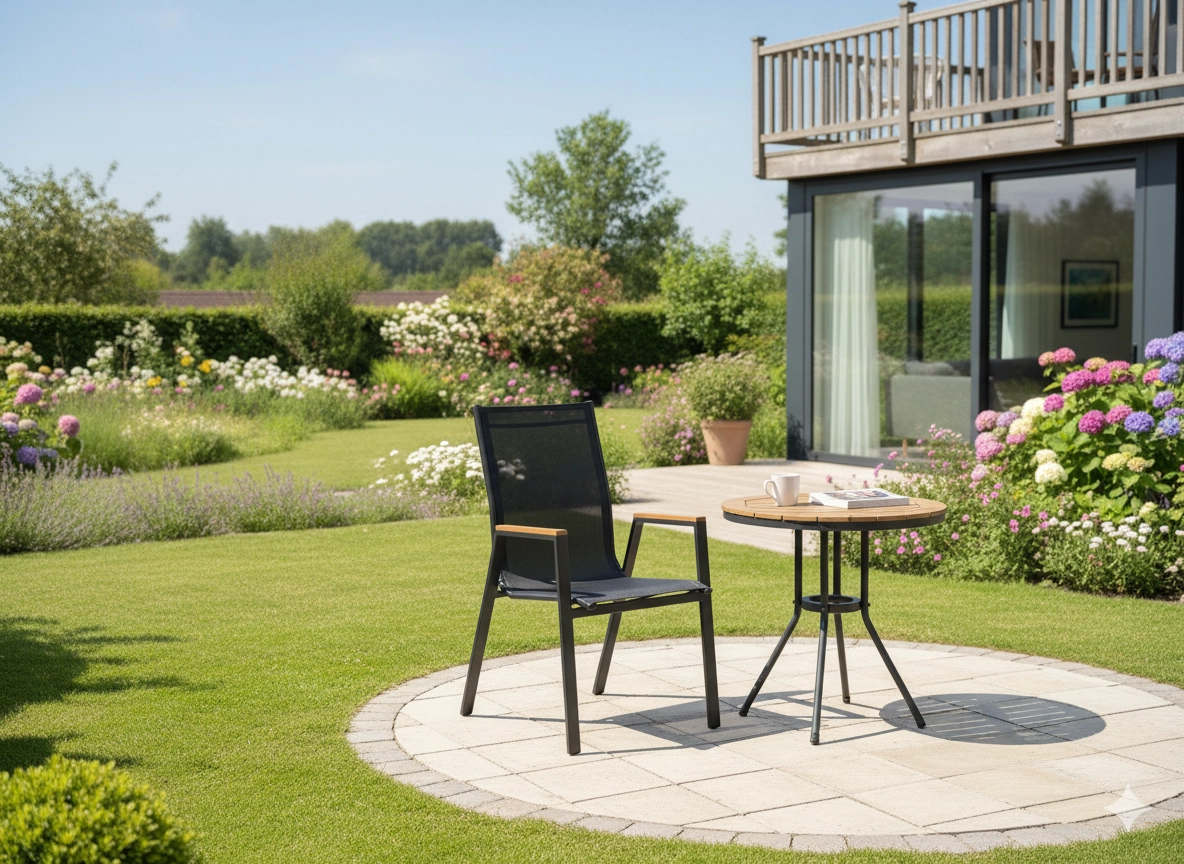 Szukasz solidnego i wygodnego krzesła ogrodowego, które bez problemu poradzi sobie z codziennym użytkowaniem na zewnątrz? Ten model łączy stalową ramę malowaną proszkowo, siatkę Textilene 2×1 z wypełnieniem dla większego komfortu oraz podłokietniki z polywoodu, które wyglądają jak drewno, lecz nie wymagają uciążliwej pielęgnacji.