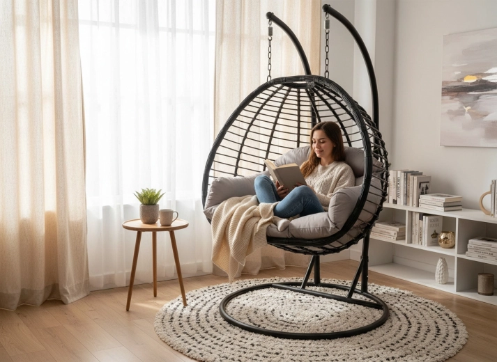 Wiszący fotel GASPAR to idealny wybór do wspólnego wypoczynku. Ponadczasowy design w szarych tonach łatwo łączy się z każdym stylem przestrzeni zewnętrznej i wewnętrznej. Dzięki solidnej konstrukcji i komfortowemu wypełnieniu zyskasz bezpieczne i przyjemne miejsce do codziennego relaksu.