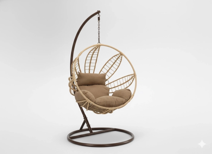 Elegancki beżowy splot i brązowa rama dodają wnętrzu ciepła i harmonii – idealne do nowoczesnych i klasycznych aranżacji, zarówno wewnątrz, jak i na zewnątrz.
