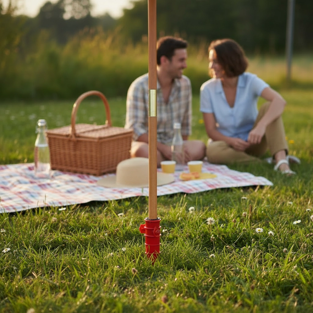 Praktyczny wkręcany stojak do parasola plażowego, ogrodowego lub na piknik zapewnia stabilne mocowanie w piasku lub ziemi. Dzięki uniwersalnej średnicy 19–32 mm oraz lekkiej, ale wytrzymałej konstrukcji z tworzywa sztucznego bezpiecznie utrzyma parasol nawet przy wietrze.