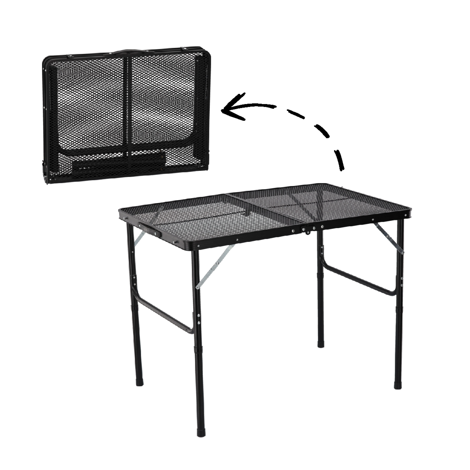 Korzystaj z komfortu stabilnego stołowania gdziekolwiek na zewnątrz. Ten składany turystyczny stół łączy wytrzymałą stal ze składaną konstrukcją dla łatwego transportu i przechowywania. Dzięki dwóm ustawieniom wysokości 40 i 70 cm dopasuje się do siedzenia, przygotowywania posiłków i pracy na świeżym powietrzu.