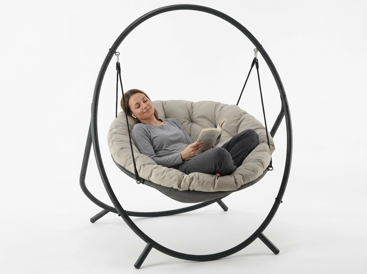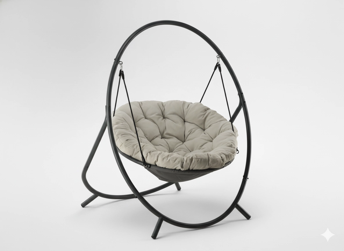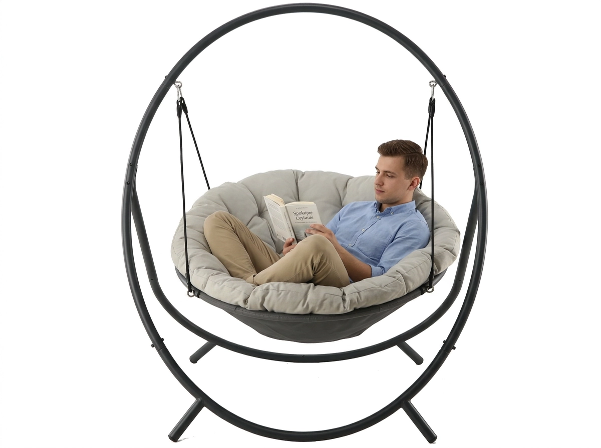Wytrzymała stalowa konstrukcja z pasami podwieszenia gwarantuje solidność, stabilność i długą żywotność nawet przy regularnym użytkowaniu na zewnątrz.