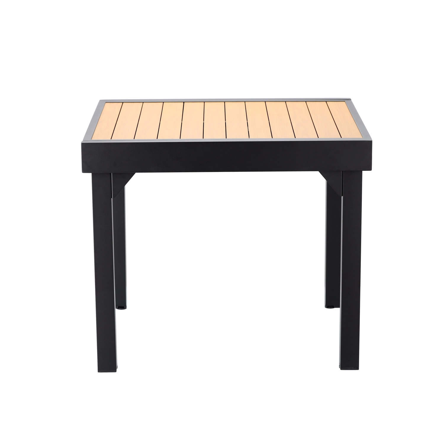 Ciesz się wygodą biesiadowania pod gołym niebem z rozkładanym aluminiowym stołem Alex. Metalowa rama malowana proszkowo jest odporna na warunki atmosferyczne i korozję, a blat z termotransferowym nadrukiem wiernie naśladuje naturalne drewno, nadając przestrzeni nowoczesny, ponadczasowy wygląd.