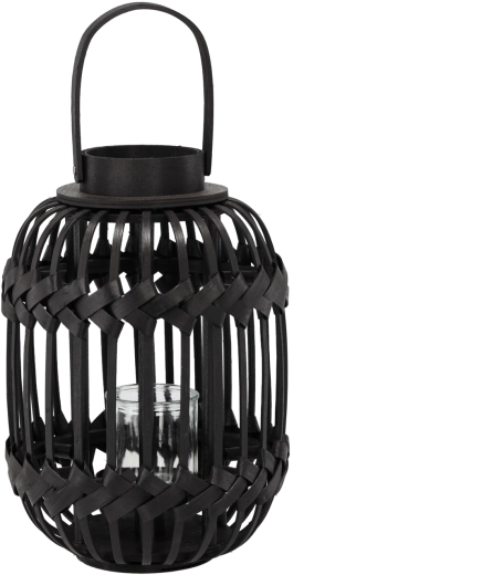 Stylowy świecznik-latarnia w czarnym wykończeniu łączy metalową konstrukcję z przezroczystym szkłem dla efektownego rozproszenia światła i bezpiecznego umieszczenia świecy. Otwarte lamele przepuszczają ciepły blask i tworzą przyjemne cienie na wieczorny relaks w domu i na zewnątrz.