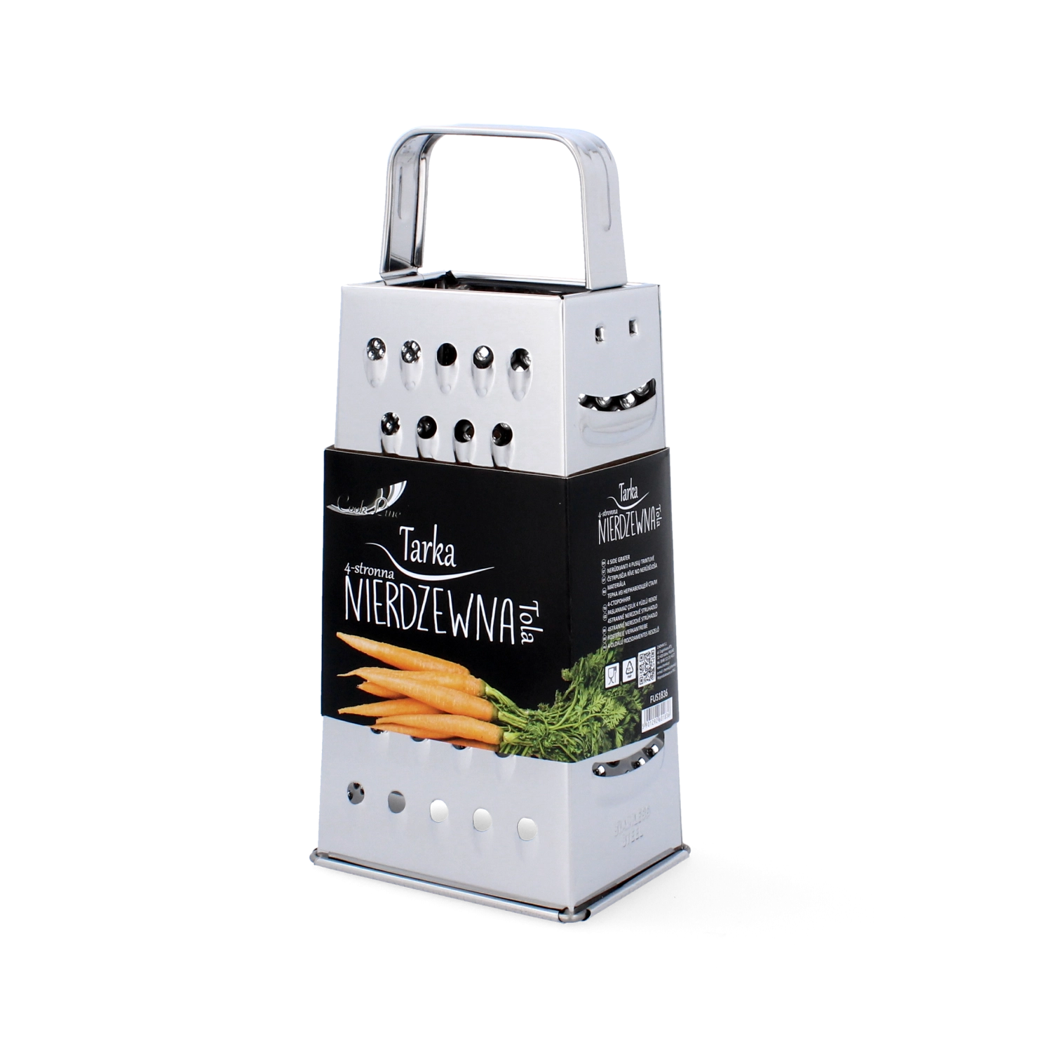 Praktyczna czterostronna tarka z wysokiej jakości stali nierdzewnej o wysokości 21 cm do codziennego gotowania. Oferuje 4 różne powierzchnie tarcia do drobnego i grubego tarcia, krojenia i plasterkowania. Trwała stal nierdzewna zapewnia długą żywotność, a ergonomiczny uchwyt wygodny i bezpieczny chwyt.