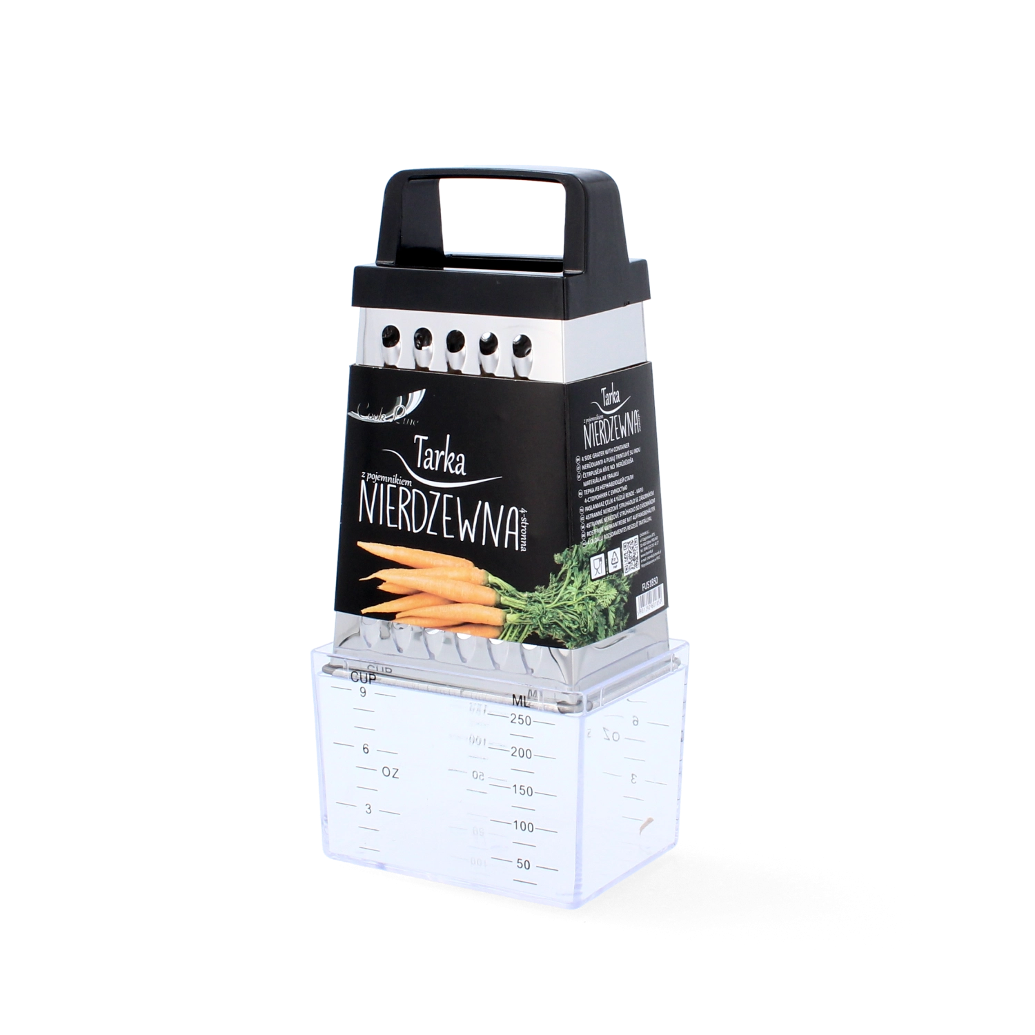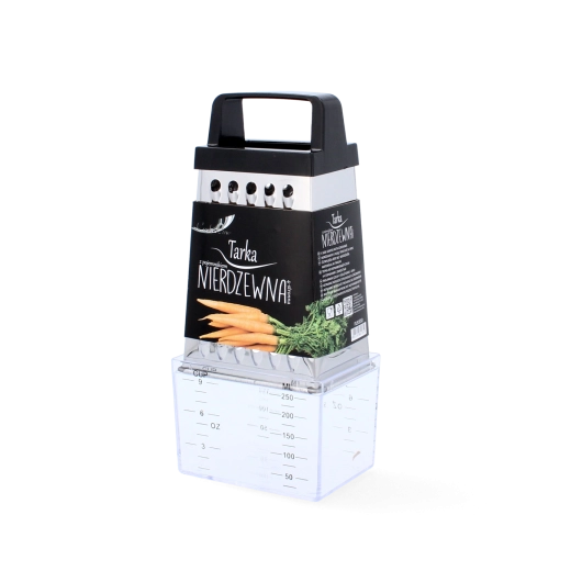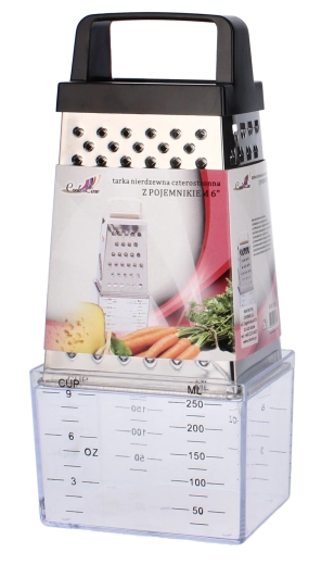 Praktyczna kuchenna tarka ze stali nierdzewnej z dołączonym pojemnikiem dla czystej i wygodnej pracy. Oferuje 4 strony tarcia – drobne, grube, plastry oraz bardzo drobne. Dzięki ergonomicznemu uchwytowi świetnie leży w dłoni, a trwała stal nierdzewna zapewnia długą żywotność.