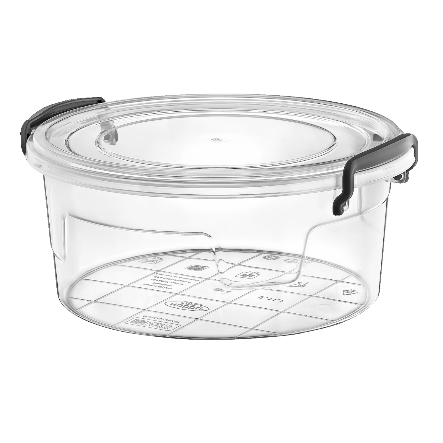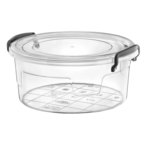 Okrągłe pudełko Multi Box 2,1 l oferuje niezawodne i higieniczne przechowywanie żywności. Wykonane z wytrzymałego plastiku bezpiecznego w kontakcie z żywnością, a dzięki kompaktowym wymiarom bez problemu mieści się w lodówce, zamrażarce oraz w szafce kuchennej. Przezroczyste korpus ułatwia orientację w zawartości i oszczędza czas podczas gotowania oraz przygotowywania posiłków na wynos.