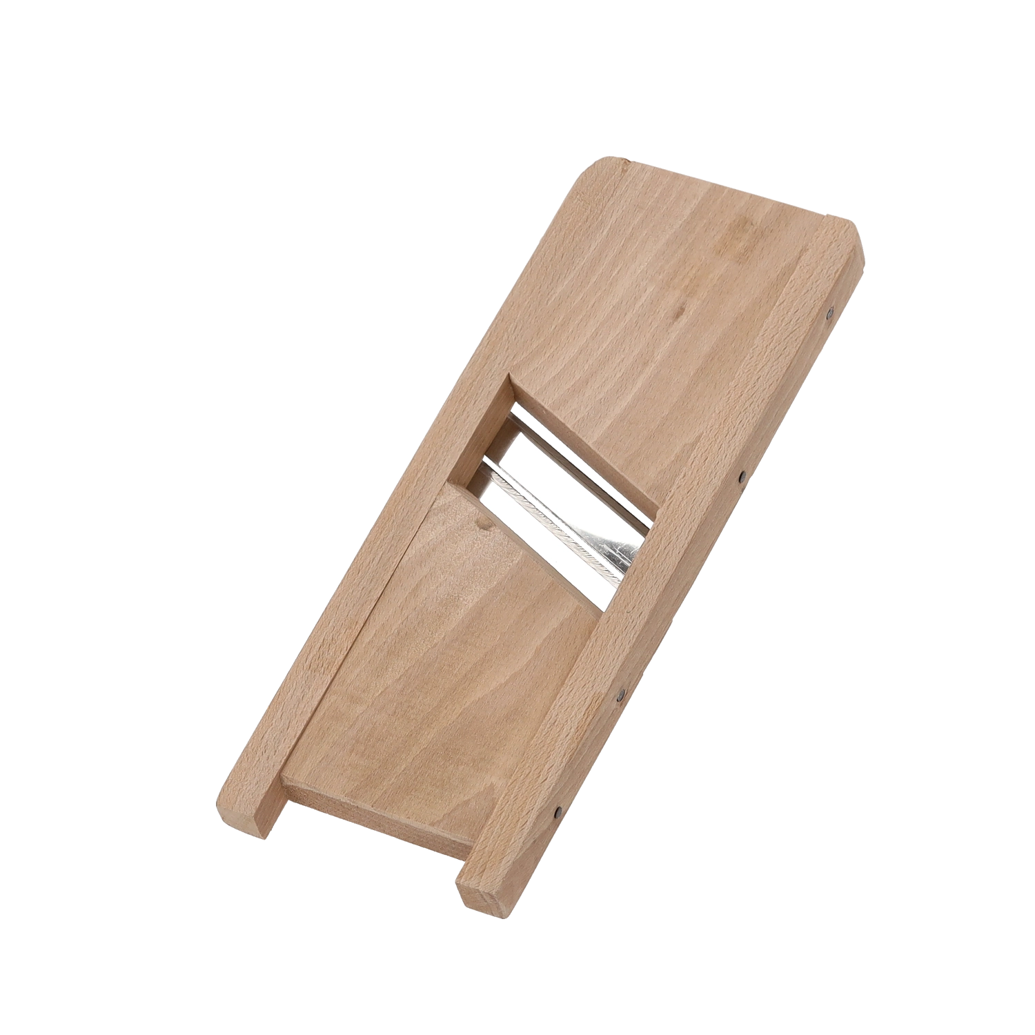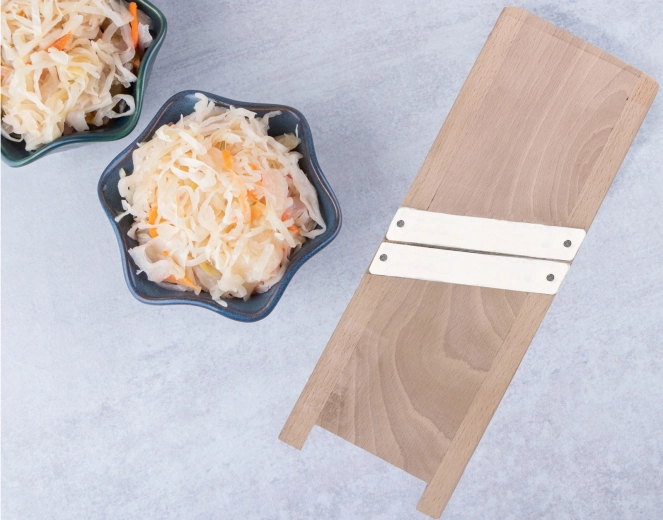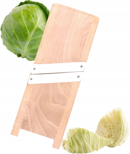 Drewniany korpus jest solidny i stabilny, dobrze leży w dłoni i wytrzymuje codzienne użytkowanie w kuchni. Dzięki kompaktowym wymiarom 25 × 13 cm świetnie nadaje się do szybkiego przygotowania mniejszych porcji – niezależnie od tego, czy kroisz kapustę, ogórki, marchew czy ziemniaki.