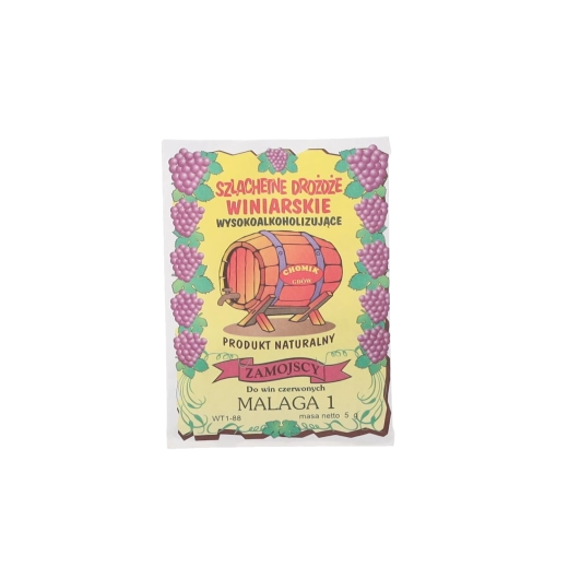 Drożdże winiarskie Malaga 1 to niezawodny wybór do produkcji win białych i czerwonych, zwłaszcza deserowych i owocowych. Umożliwiają fermentację do 17% alkoholu, a opakowanie 5 g wystarcza na 5–30 litrów moszczu. Łatwa przygotowanie startera zgodnie z instrukcją zapewnia stabilną fermentację i wysoką jakość gotowego wina.