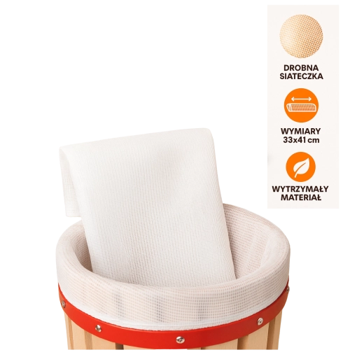 Podczas użycia tego filtra miąższ pozostaje w koszu prasy, co ułatwia sprzątanie i zwiększa ogólną efektywność tłoczenia. Materiał został zaprojektowany tak, aby nie wpływał na końcowy smak i wytrzymywał wielokrotne użytkowanie.