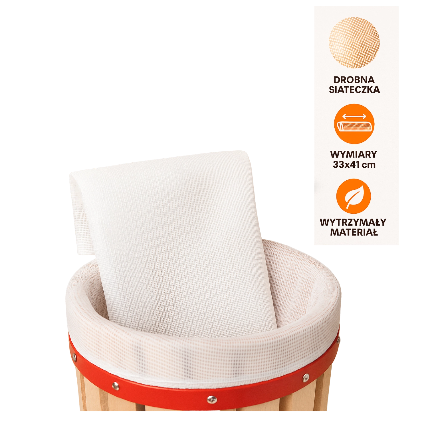 Praktyczny worek filtracyjny do prasy do owoców o pojemności 18 l zapewnia czystszy sok bez pulpy. Dzięki wysokiej jakości materiałowi jest wytrzymały, bezpieczny dla żywności i umożliwia wyższy uzysk soku przy mocniejszym docisku.