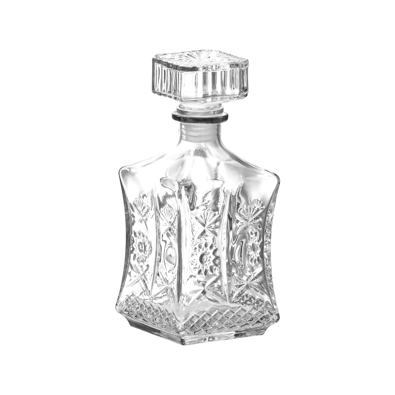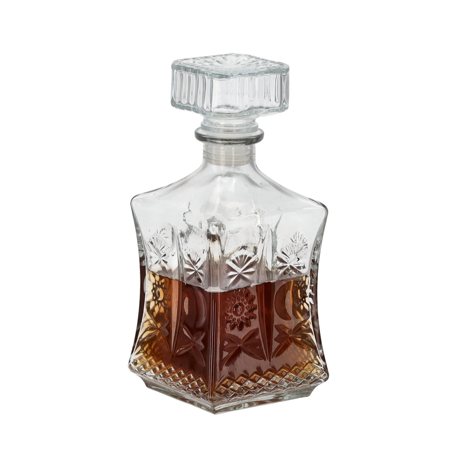 Elegancka szklana karafka o pojemności 730 ml to stylowe uzupełnienie domowego baru i odświętnego stołu. Z wysokiej jakości grubego szkła, wiernie imitującego kryształ, nada napojom luksusowy wygląd. Dzięki szklanemu korkowi z uszczelką świetnie zachowa aromat i smak likierów, win oraz innych ulubionych napojów.