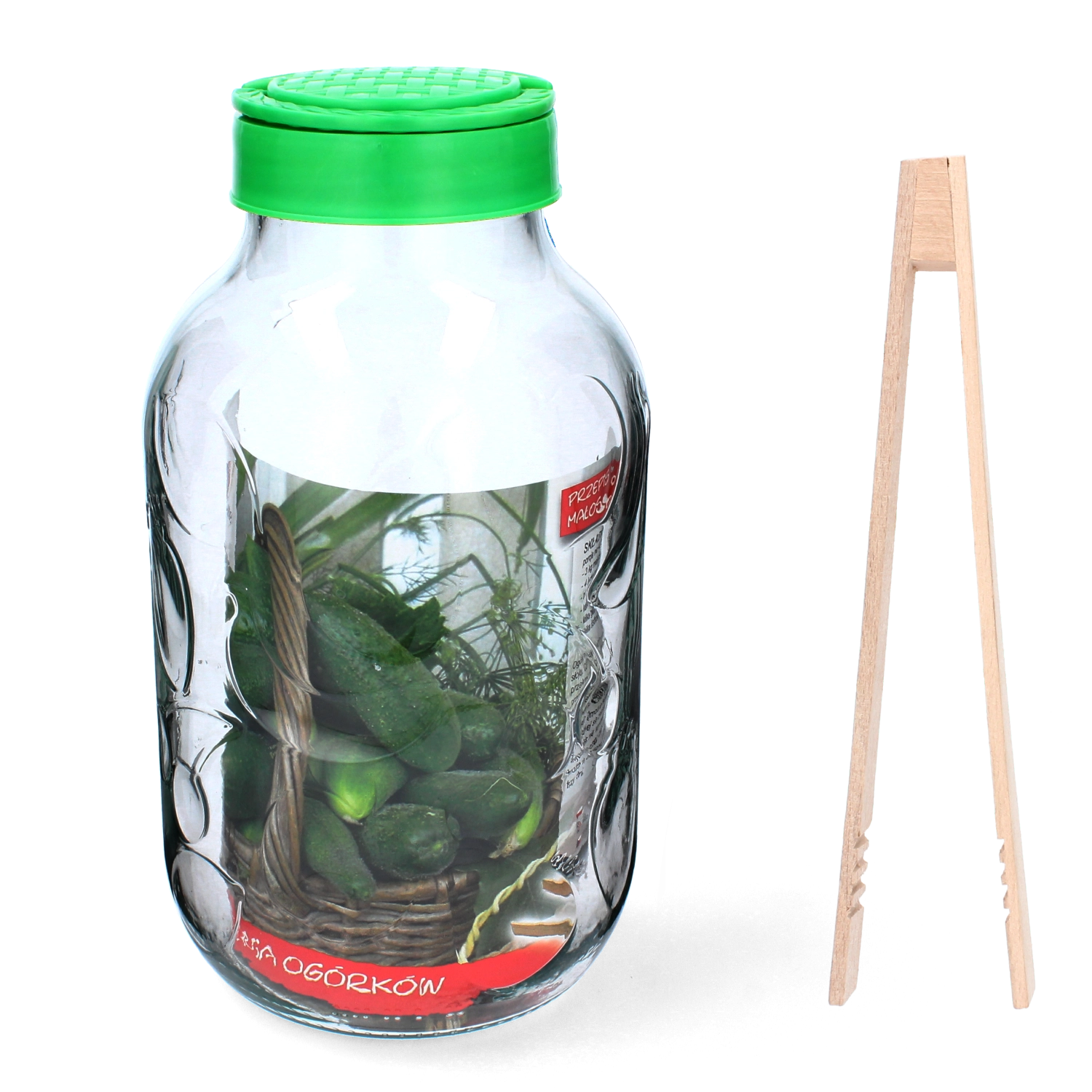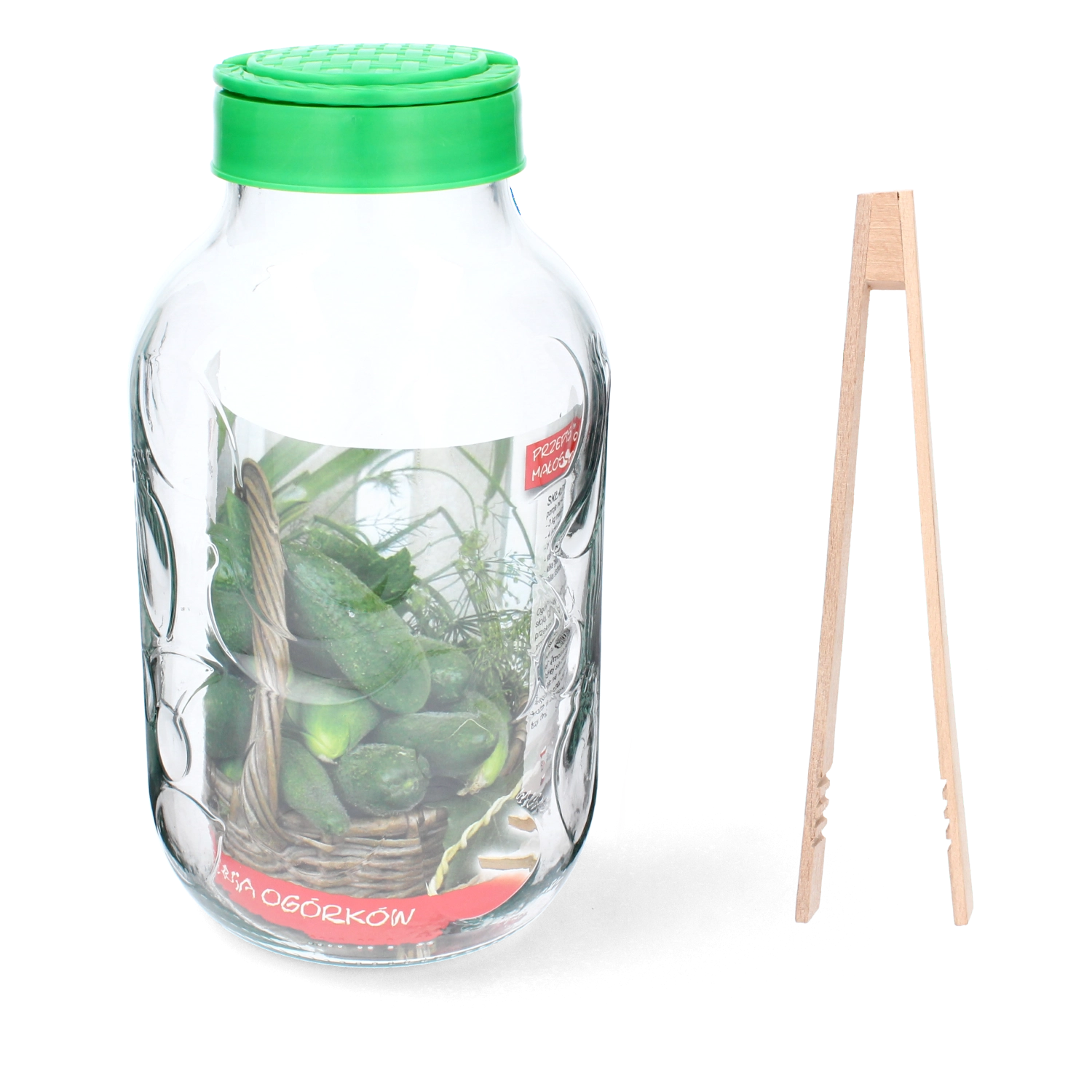 Ten słoik o pojemności 5 litrów to świetny wybór do domowego wekowania i przechowywania żywności. Solidna plastikowa pokrywka zapewnia dobrą szczelność, dzięki czemu Twoje przetwory dłużej zachowają aromat i świeżość. Dzięki dołączonemu przepisowi i szczypcom do owoców praca ze składnikami jest wygodniejsza i czystsza.