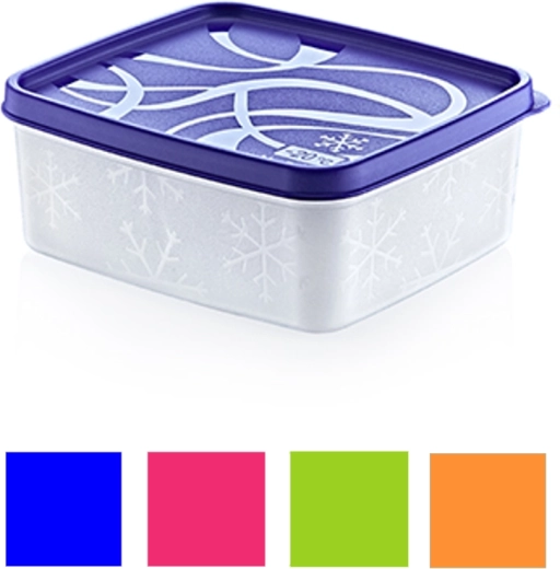 Praktyczna i wytrzymała pojemnik No-Frost o pojemności 0,65 l utrzyma Twoją żywność dłużej świeżą w zamrażarce i lodówce. Specjalny materiał zapobiega powstawaniu szronu, przezroczyste ścianki umożliwiają szybką kontrolę zawartości, a pokrywka szczelnie przylega dla bezpiecznego przechowywania. Pojemnik jest bez BPA, łatwy w utrzymaniu i nadaje się do zmywarki oraz kuchenki mikrofalowej (bez pokrywki).