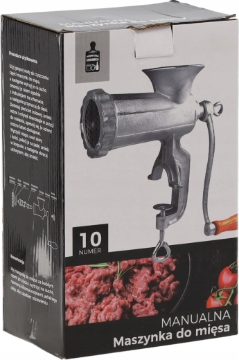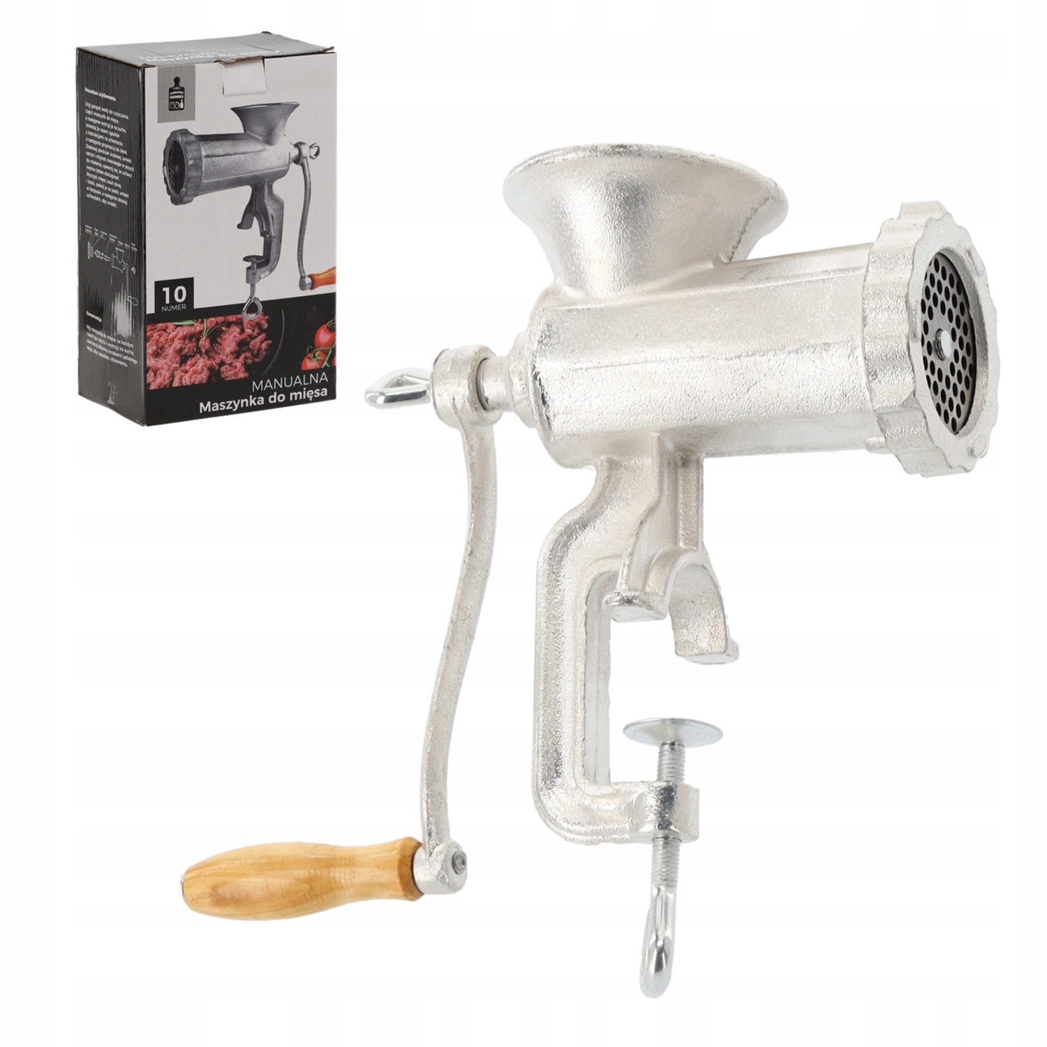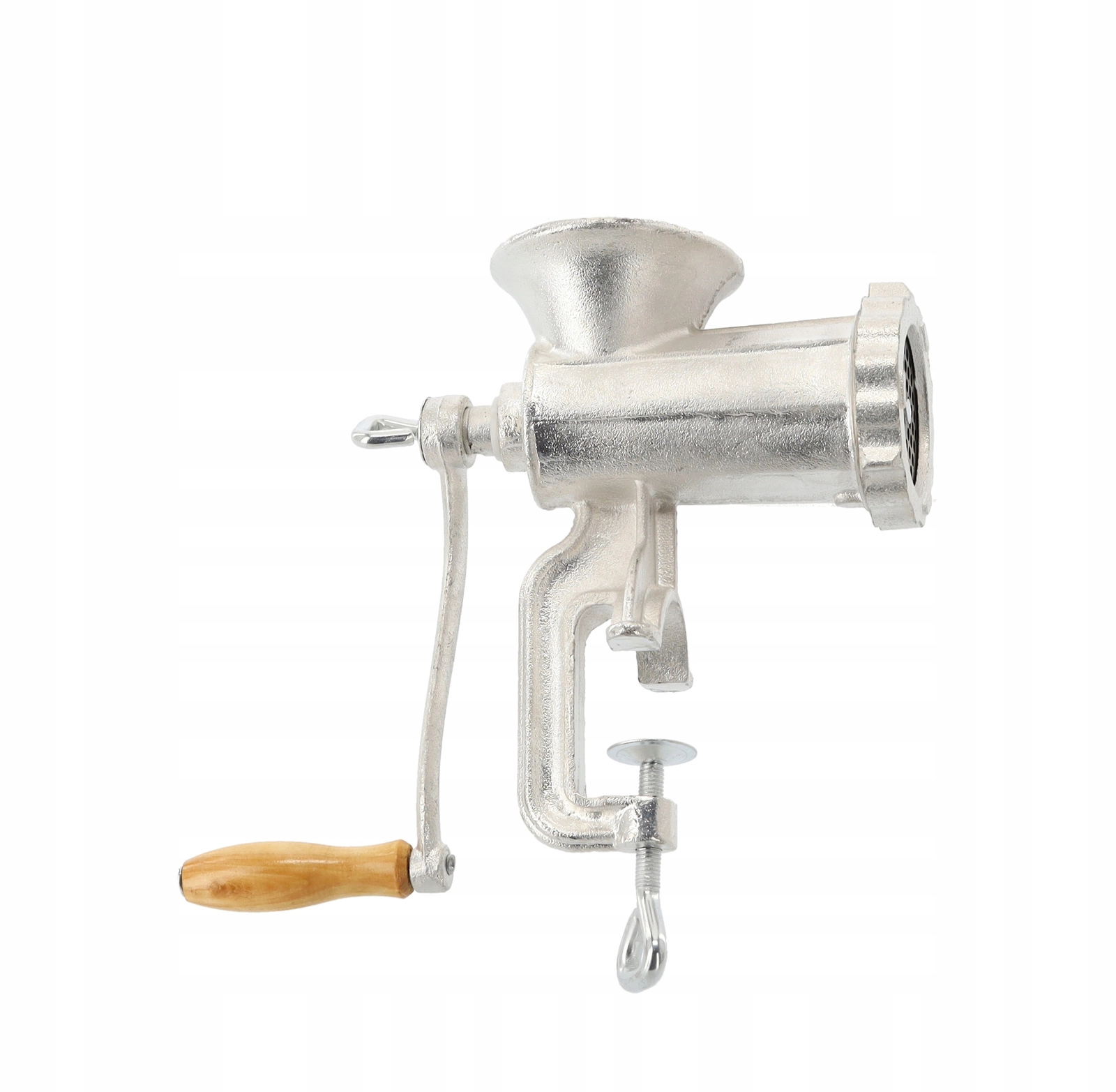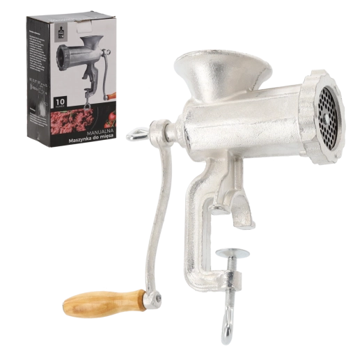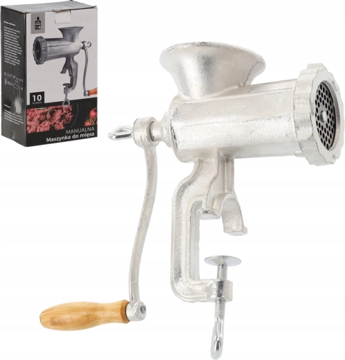 Klasyczna ręczna maszynka do mięsa nr 10 to niezawodny pomocnik dla domowych kucharzy i miłośników domowych wyrobów. Dzięki wytrzymałemu żeliwnemu korpusowi, stalowym ostrzom i solidnemu zaciskowi do stołu zapewnia stabilne i efektywne mielenie wołowiny, wieprzowiny, drobiu oraz ryb. Ergonomiczna drewniana korbka gwarantuje wygodną pracę, a łatwy demontaż ułatwia czyszczenie.