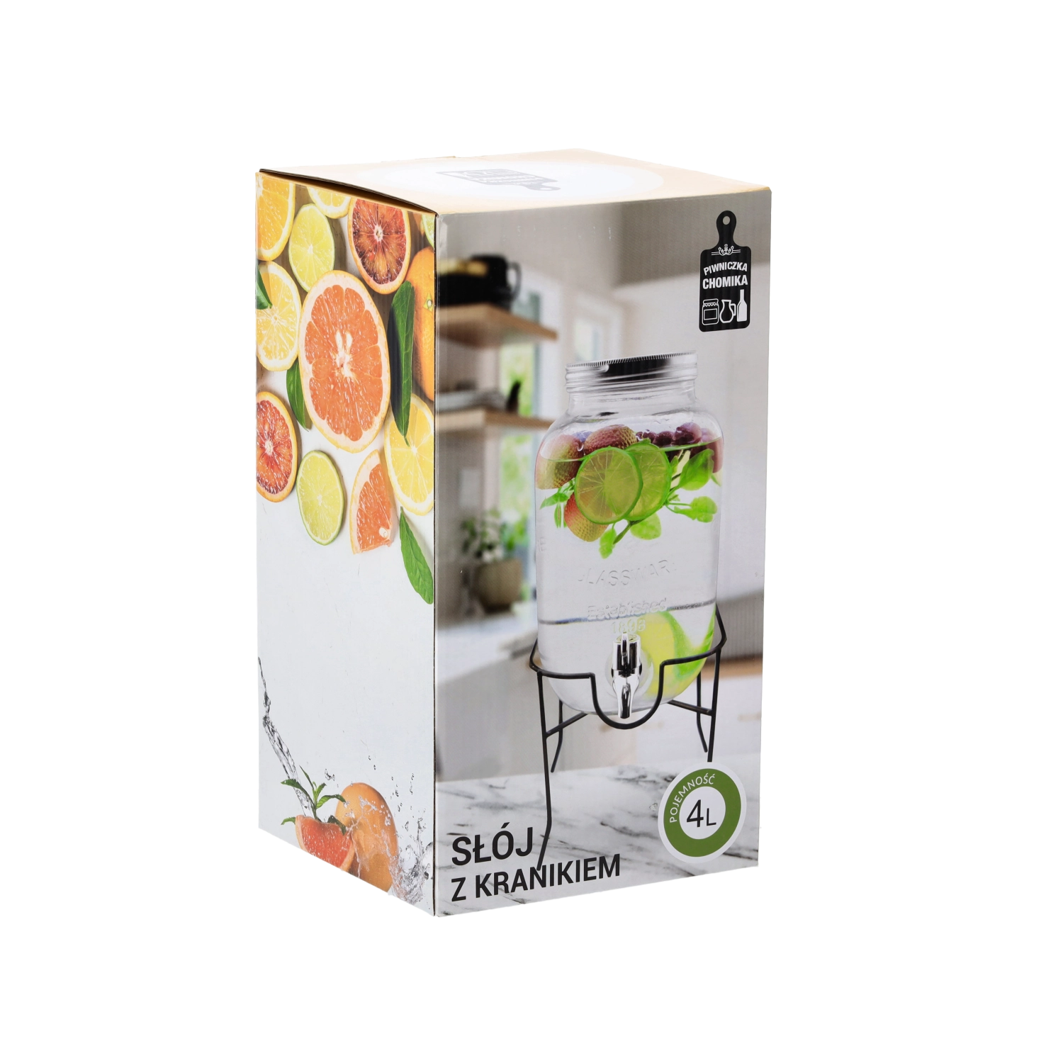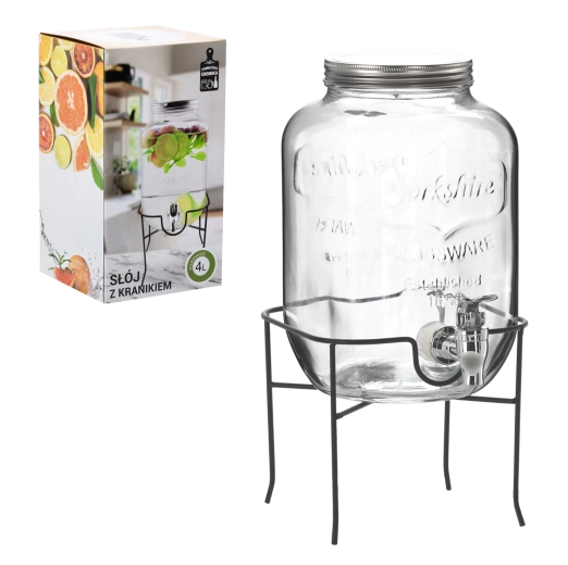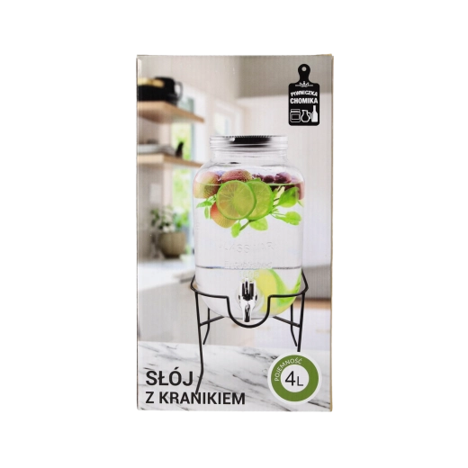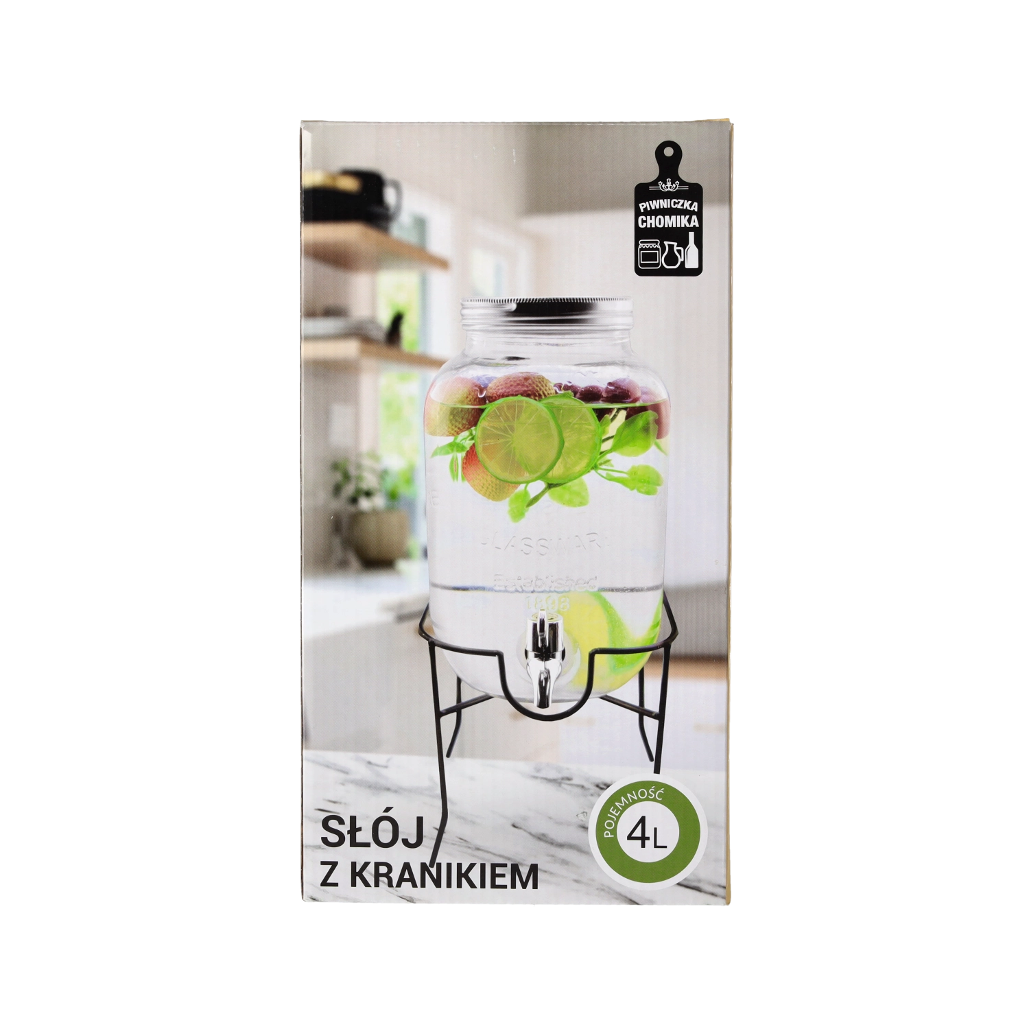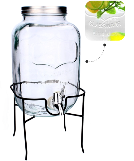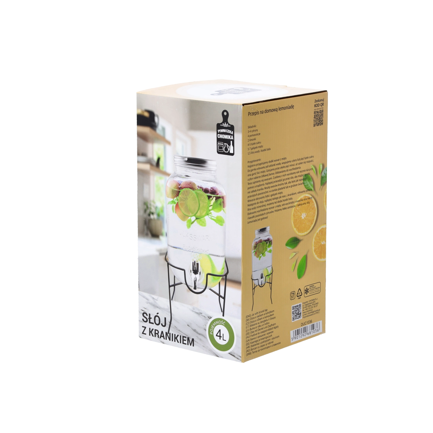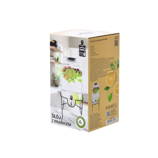 Stabilny metalowy stojak podnosi naczynie do idealnej wysokości, aby łatwo nalewać również do wysokich szklanek czy karafek. Przezroczyste szkło sprawdza się do wody infuzowanej owocami, domowych lemoniad i mrożonej herbaty, a przy tym stanie się dekoracyjnym elementem Twojej kuchni, jadalni lub ogrodowego kącika.