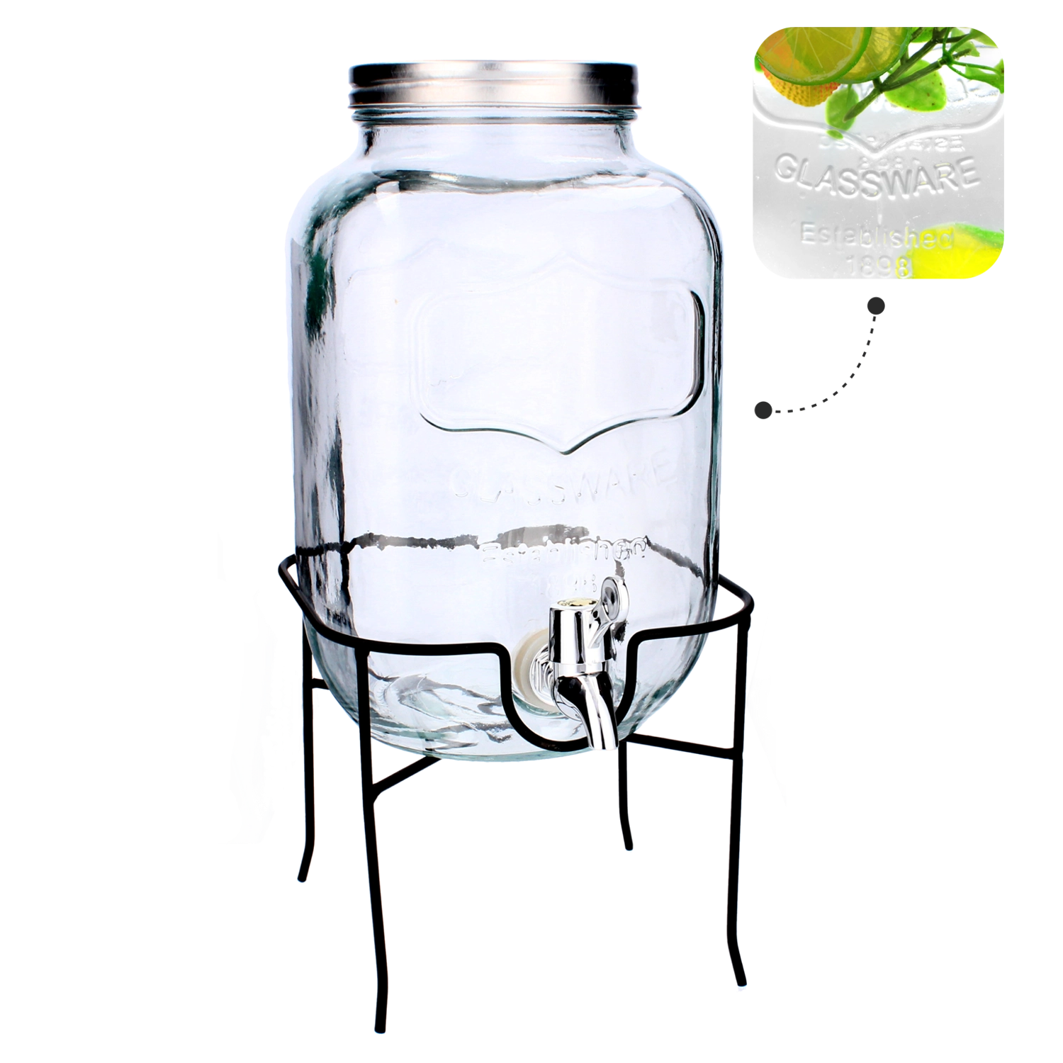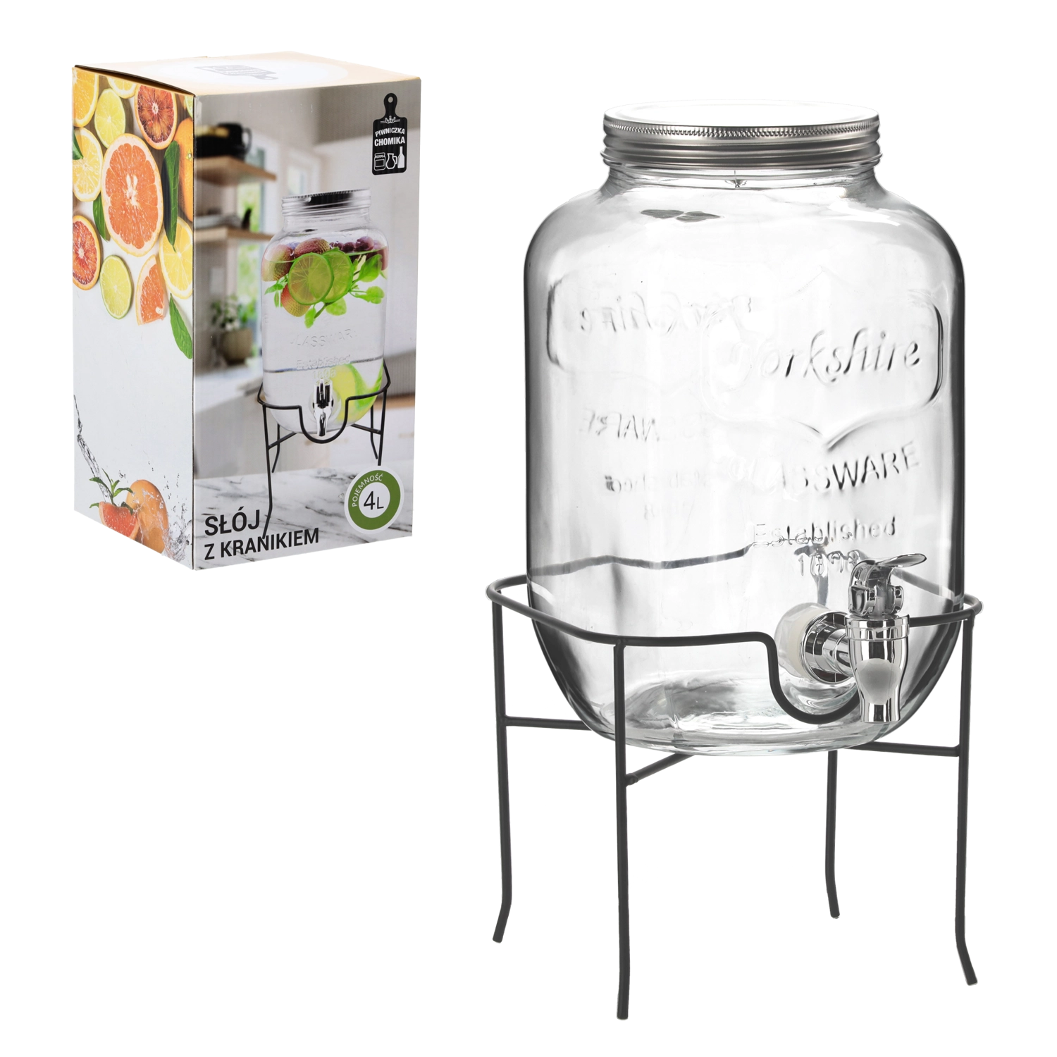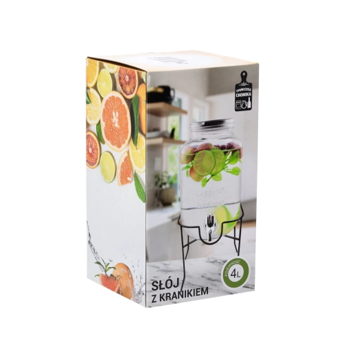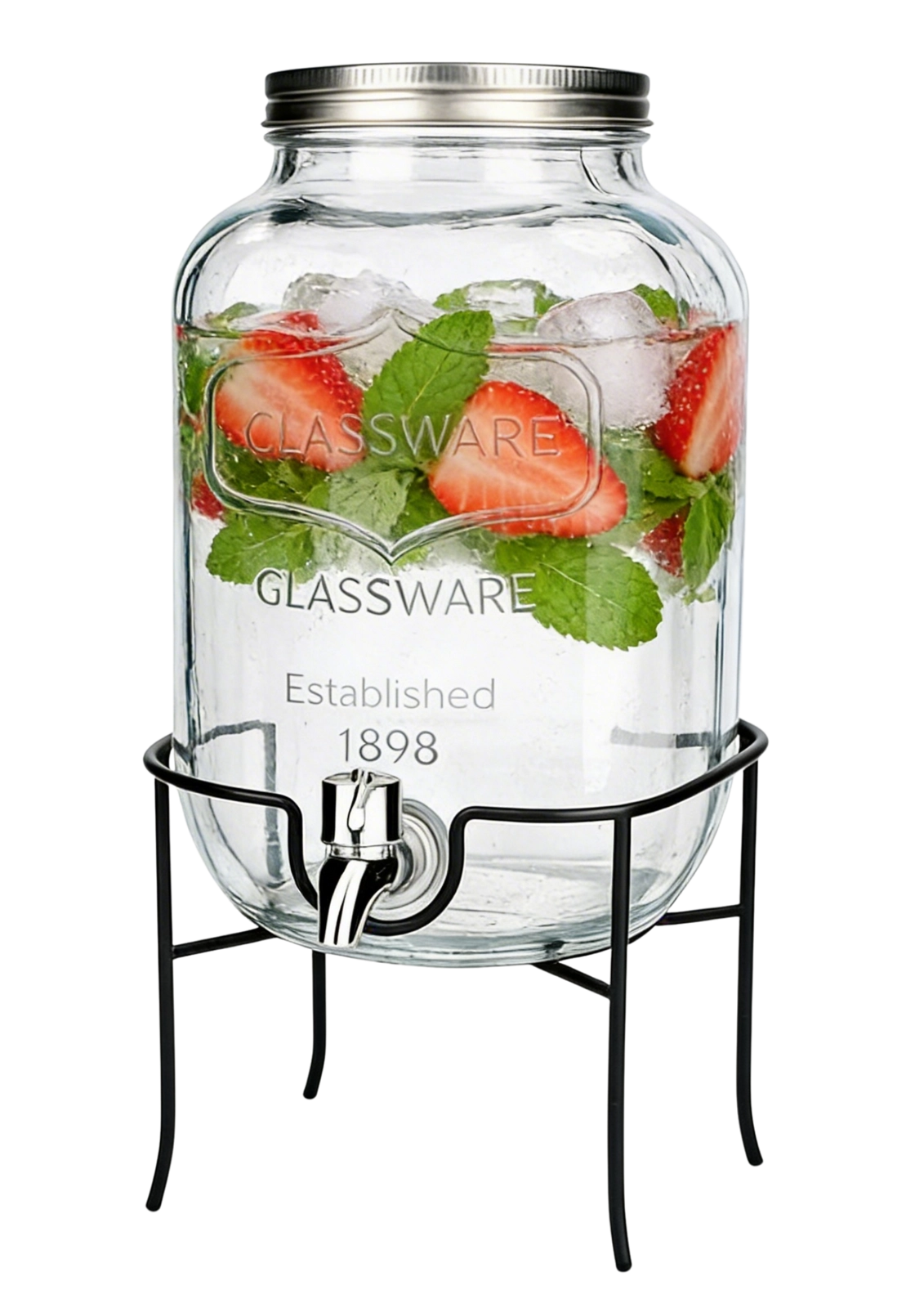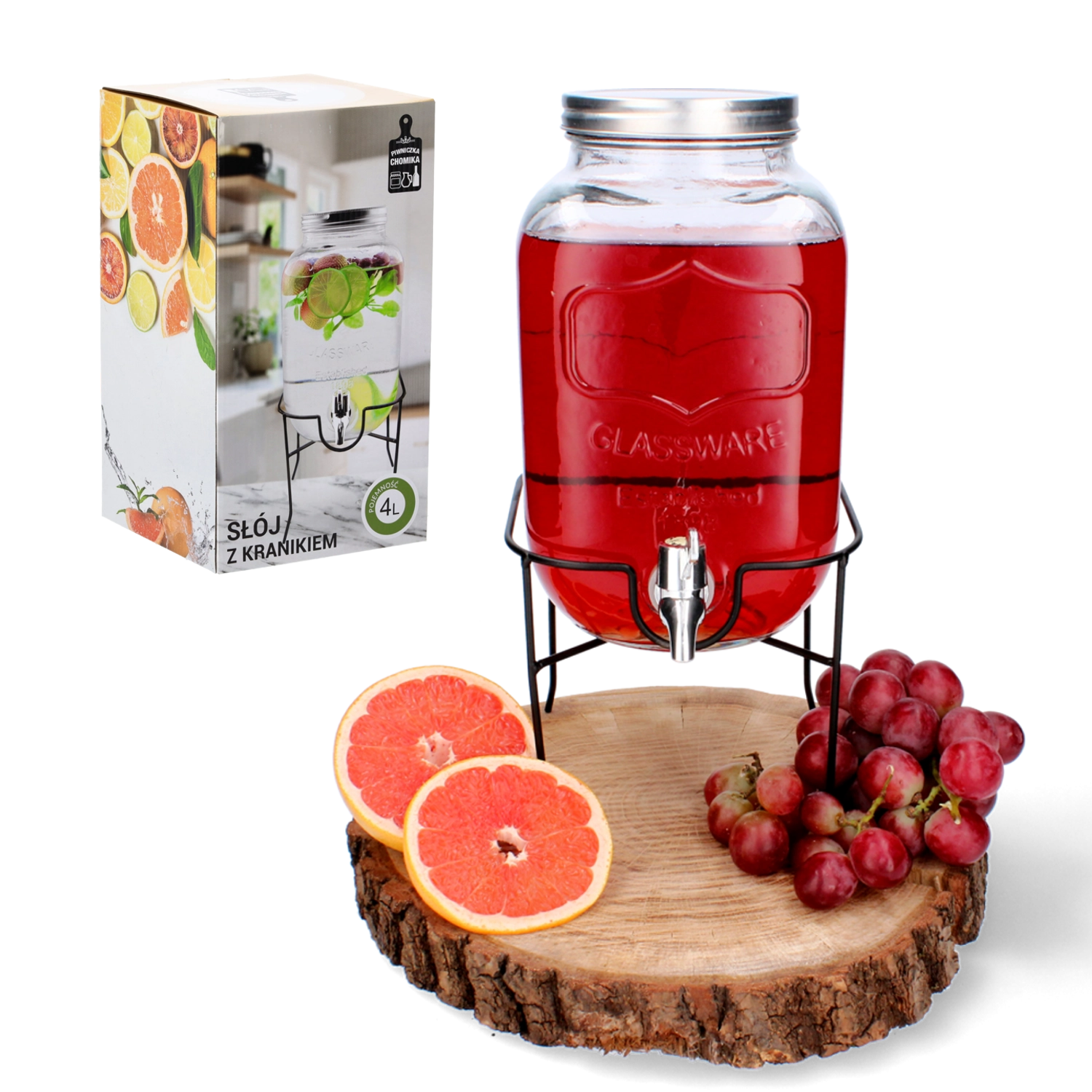 Stabilny metalowy stojak podnosi naczynie do idealnej wysokości, aby łatwo nalewać również do wysokich szklanek czy karafek. Przezroczyste szkło sprawdza się do wody infuzowanej owocami, domowych lemoniad i mrożonej herbaty, a przy tym stanie się dekoracyjnym elementem Twojej kuchni, jadalni lub ogrodowego kącika.