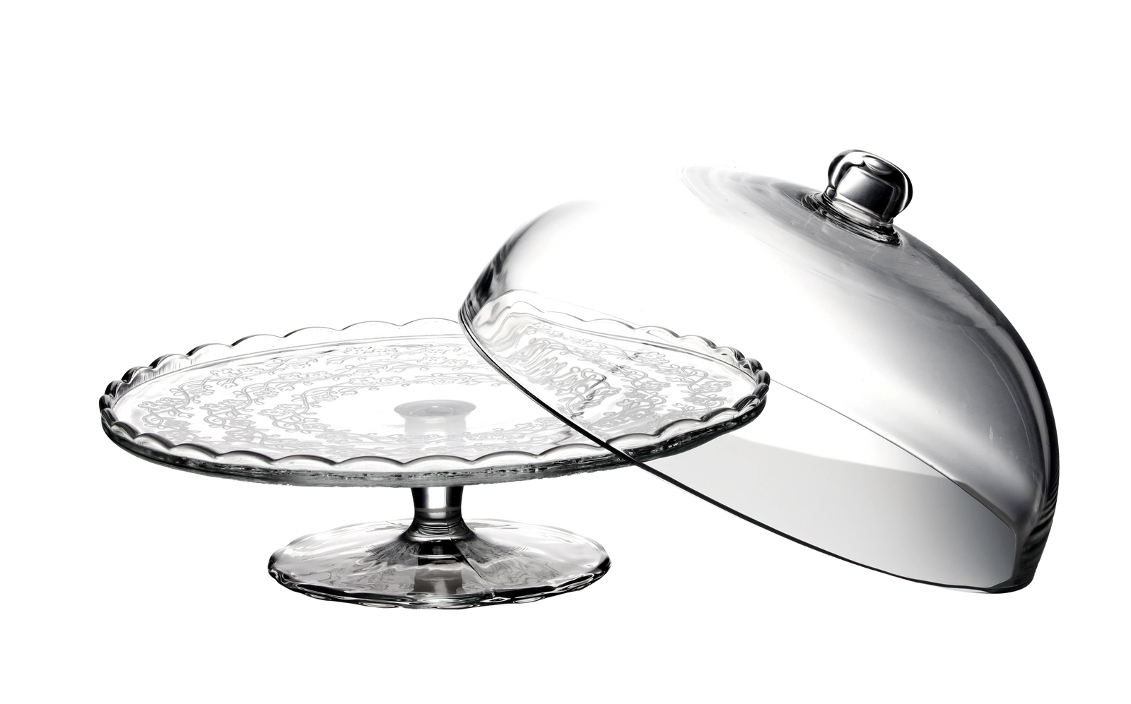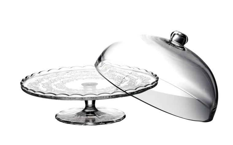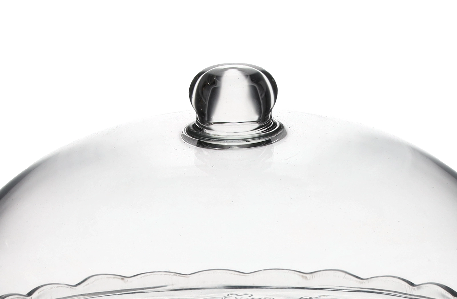 Szklana pokrywa z ergonomicznym uchwytem zabezpiecza potrawy przed kurzem i spowalnia wysychanie.