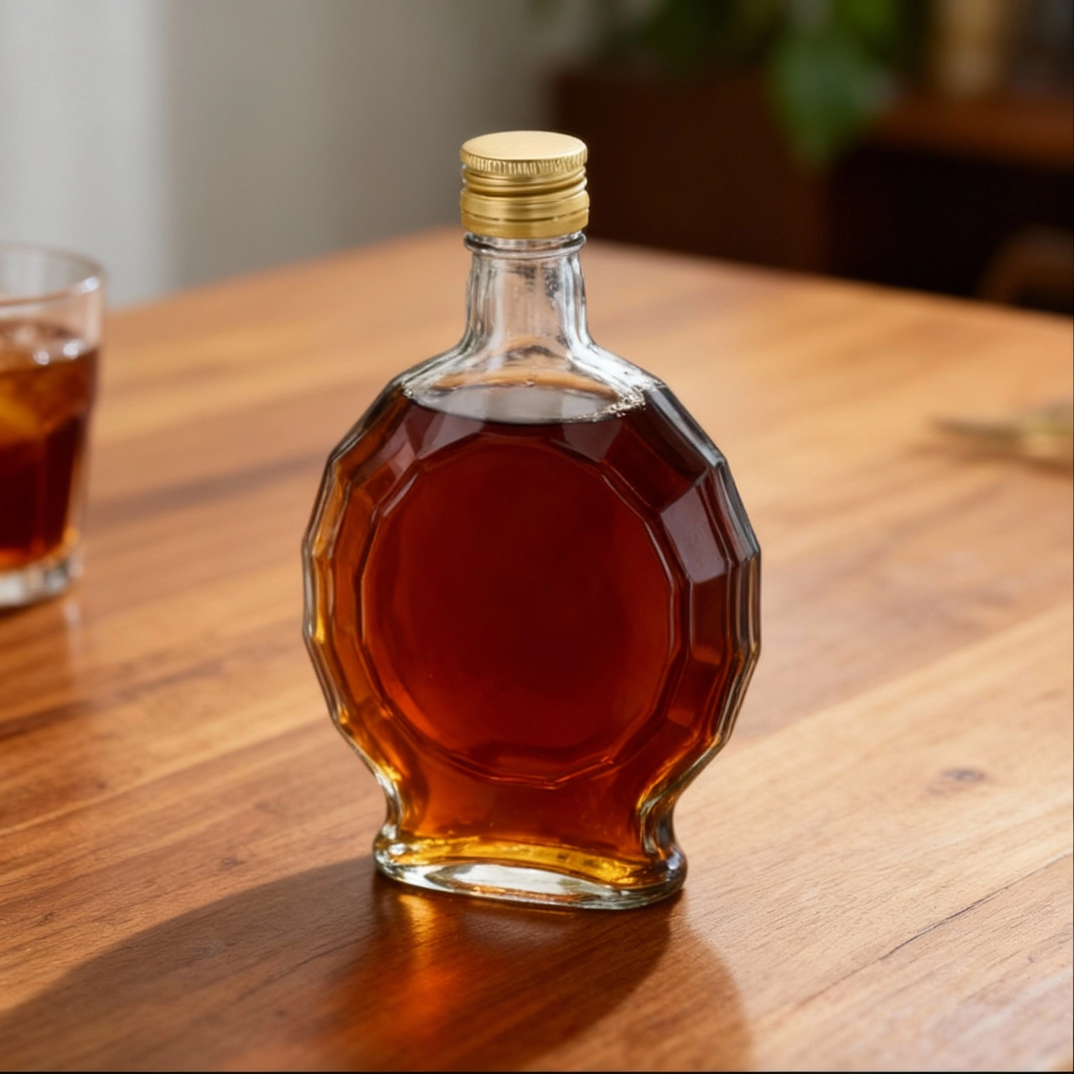 Elegancka szklana butelka Medalion o pojemności 250 ml wyróżnia się ośmiokątnym kształtem, który nadaje napojom wyrafinowany wygląd. Przezroczyste szkło pięknie podkreśla kolor i klarowność domowych likierów, win czy syropów, a zakręcane zamknięcie zapewnia szczelne domknięcie oraz zachowanie świeżości i aromatu.