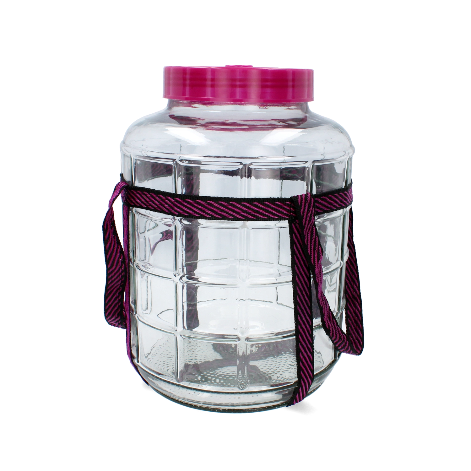 Dzięki dołączonemu pasowi nośnemu przenoszenie pojemnego naczynia jest wygodne i bezpieczne, a przezroczyste szkło zapewnia świetną kontrolę nad przebiegiem fermentacji. Stylowy relief na powierzchni sprawia, że gąsior prezentuje się estetycznie również na kuchennym blacie.