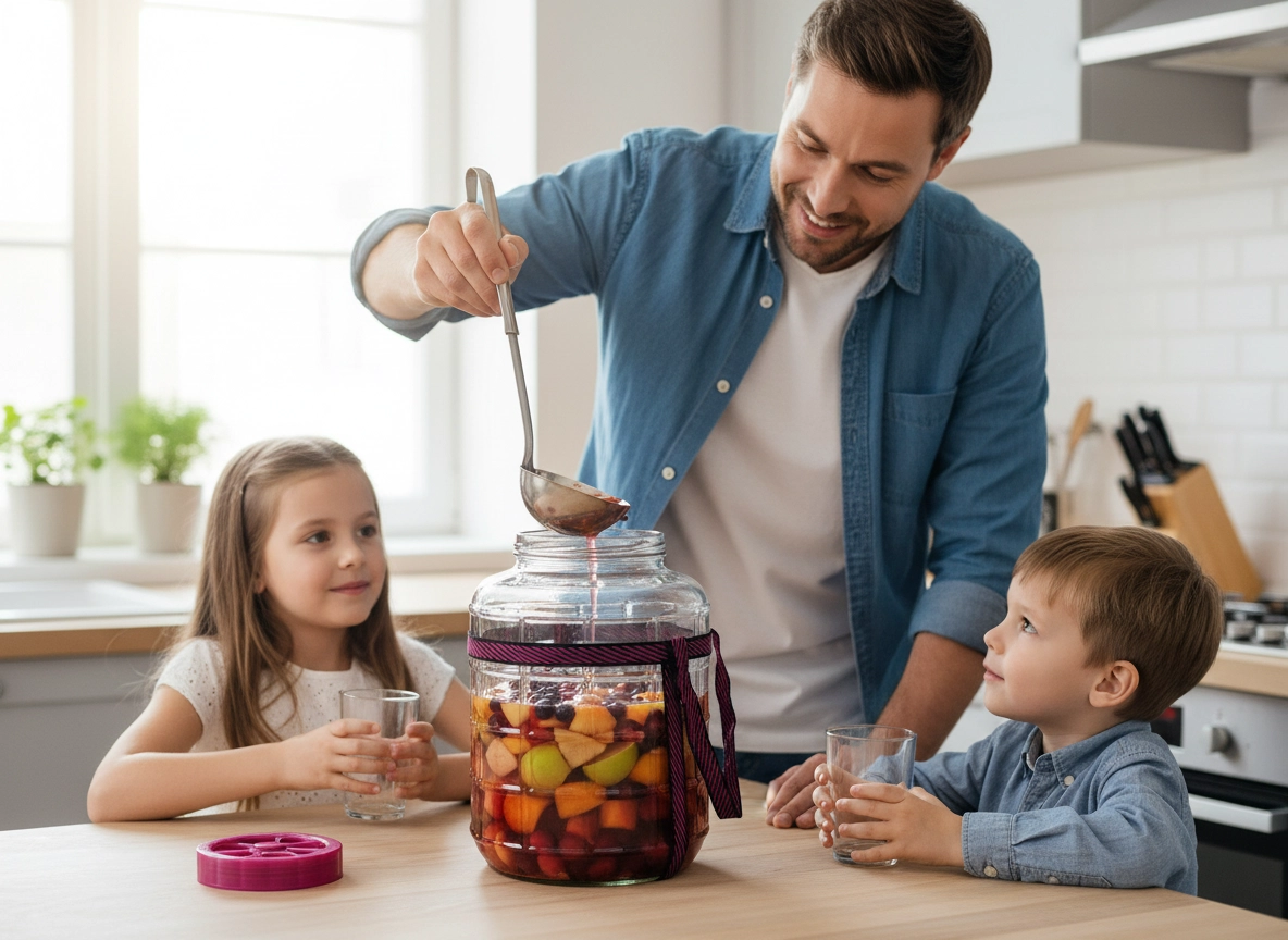 Przygotuj za jednym razem większą partię domowego wina, lemoniad, moszczów czy warzyw marynowanych. Przezroczyste szkło ułatwia kontrolę zawartości i procesu.