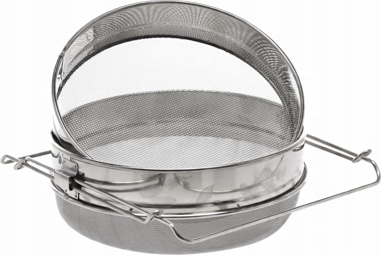 Profesjonalne sitko do miodu o średnicy 24 cm wykonane jest z wysokiej jakości stali nierdzewnej, która jest higieniczna, odporna na korozję i łatwa w utrzymaniu. Podwójny system filtracji o różnej gęstości sit skutecznie oddziela wosk i drobne cząstki, dzięki czemu uzyskasz klarowny i czysty miód przy minimalnym wysiłku.