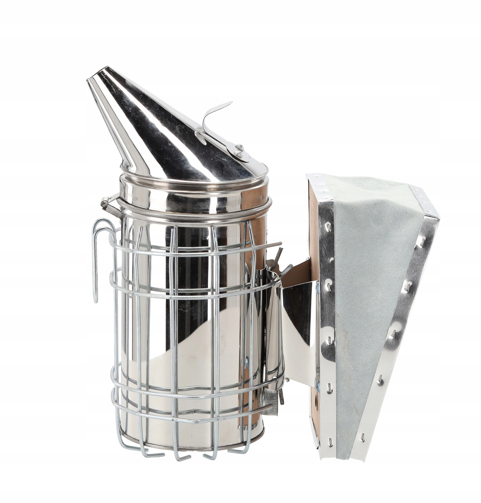 Niezawodny podkurzacz to podstawa wyposażenia każdego pszczelarza. Ten model ze stali nierdzewnej oferuje wysoką odporność na ciepło i warunki atmosferyczne, a dzięki skórzanemu miechowi wytwarza stabilny strumień dymu dla szybkiego i skutecznego uspokajania pszczół. Szeroka podstawa znacząco zmniejsza ryzyko przewrócenia podczas pracy w terenie.
