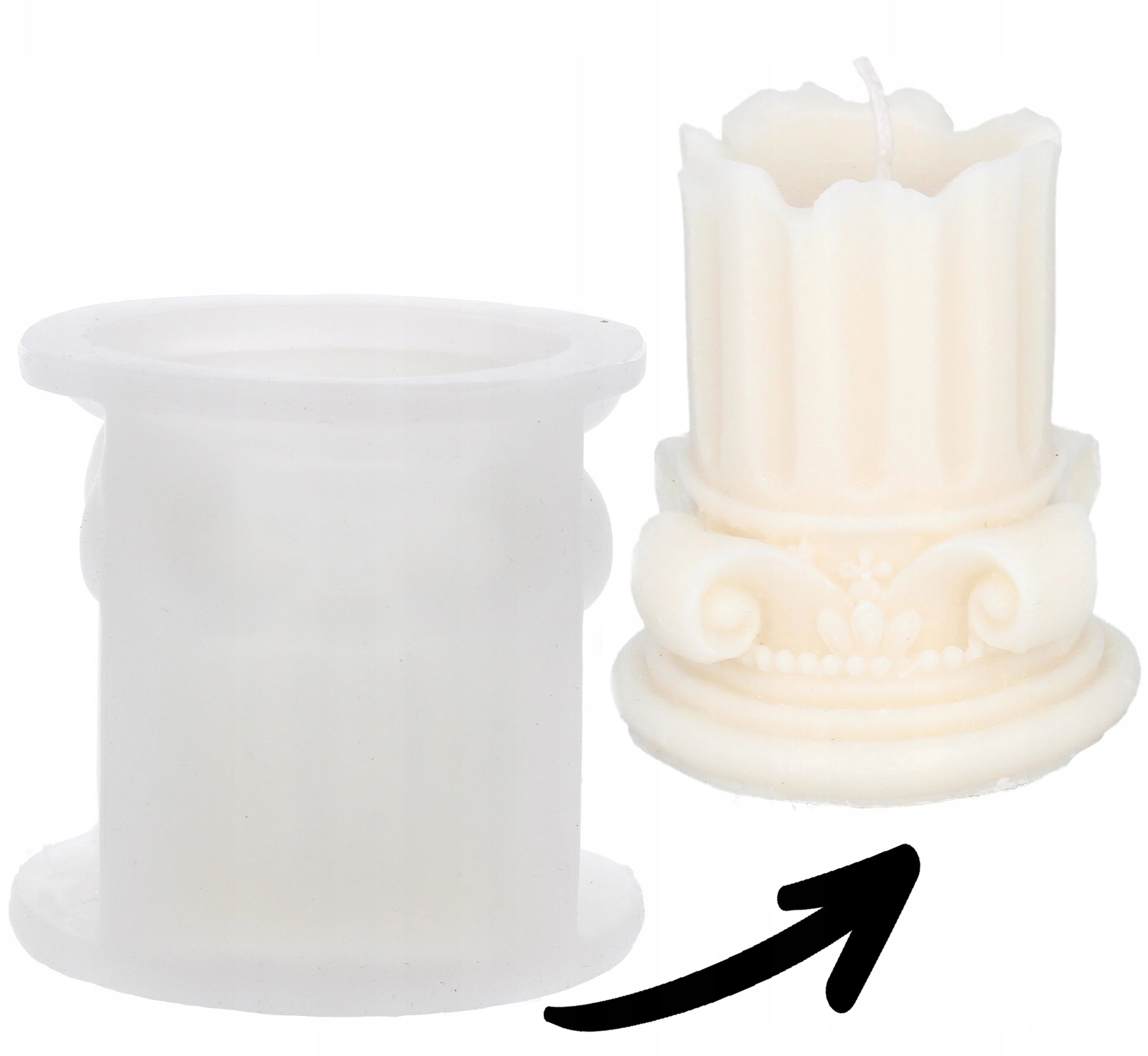 Stwórz w domu wyjątkowe dekoracyjne świece dzięki tej wysokiej jakości silikonowej formie z motywem klasycznej kolumny. Forma z elastycznego silikonu zapewnia łatwe wyjęcie odlewu, wiernie odwzorowuje detalne wzory i żłobkowanie i nadaje się do wosku pszczelego oraz parafiny. Świetny wybór dla miłośników DIY, a także jako baza do oryginalnych prezentów i stylowych dekoracji domowych.