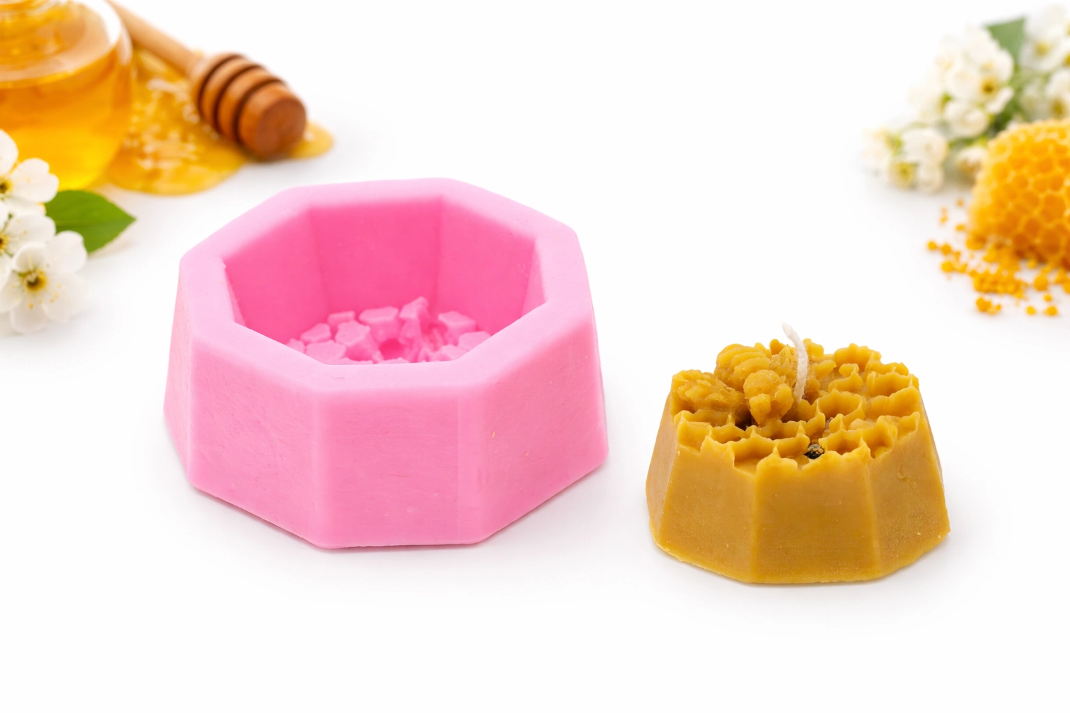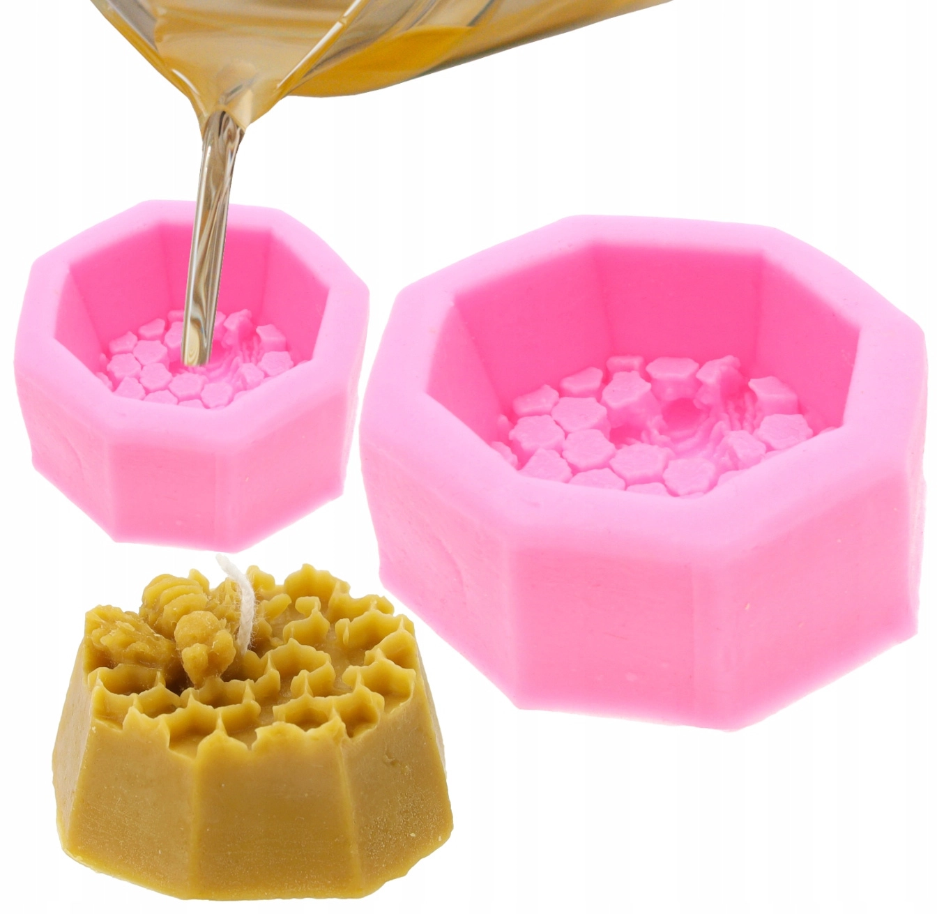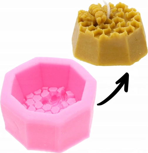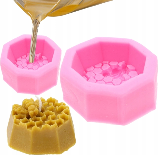 Odkryj radość z domowej produkcji świec dzięki tej wytrzymałej silikonowej formie w kształcie ośmiokąta z plastrami miodu i pszczółką. Materiał jest elastyczny, odporny na temperaturę i zapewnia łatwe wyjmowanie odlewu bez uszkodzeń, nawet przy delikatnych strukturach.