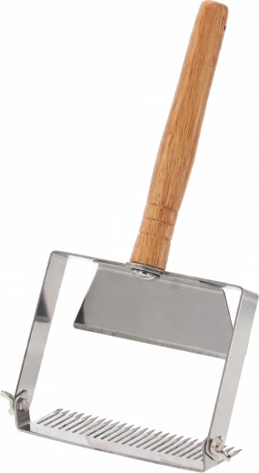 Ten profesjonalny widelec do odsklepiania wykonany jest z trwałej stali nierdzewnej, która łatwo się czyści i nie wpływa na smak ani jakość miodu. Ergonomiczna drewniana rękojeść zapewnia pewny chwyt i komfortową pracę nawet przy dłuższym użytkowaniu.