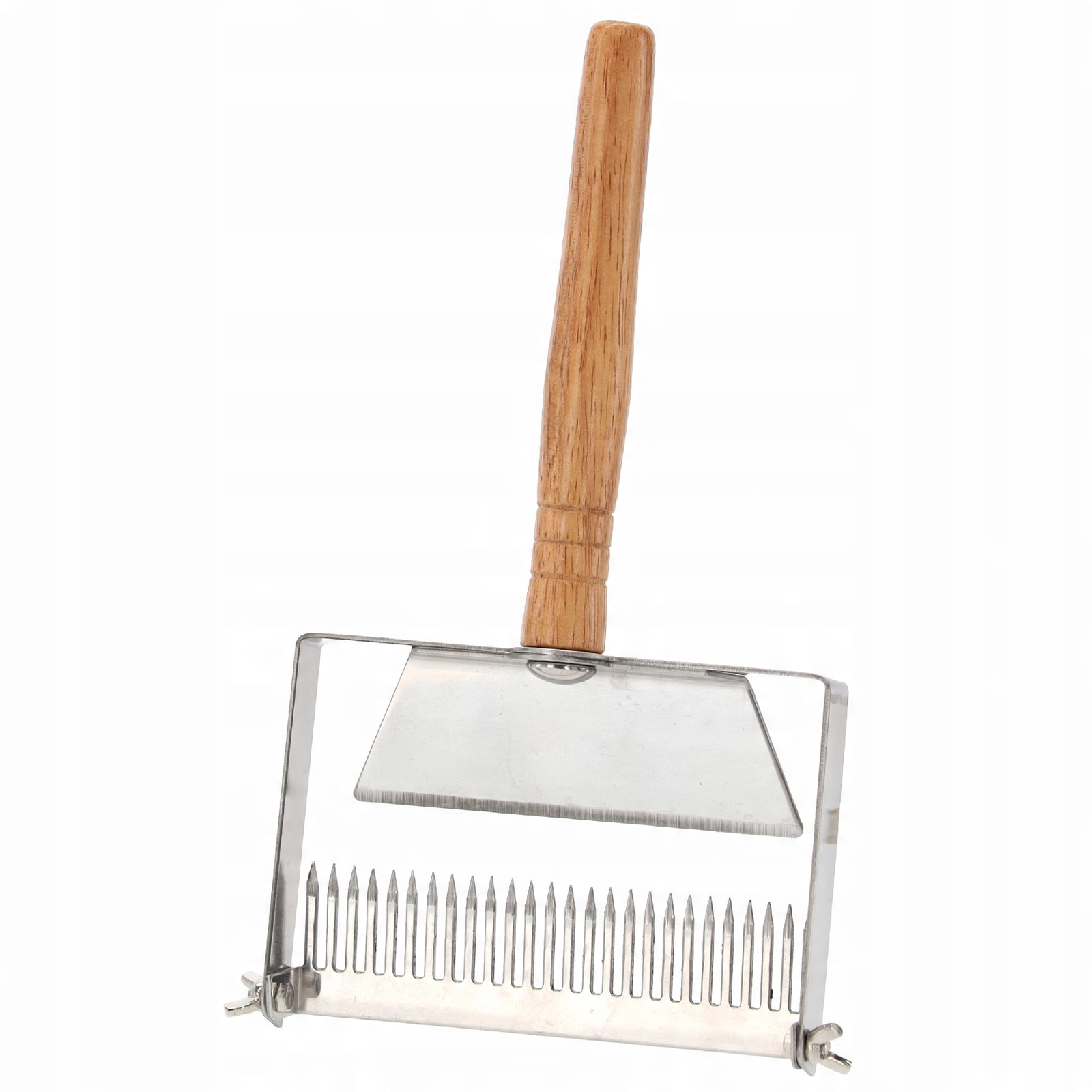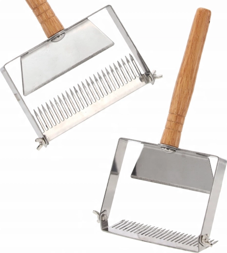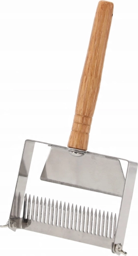 Regulowane zęby i praktyczna listwa prowadząca pomagają precyzyjnie ustawić głębokość zanurzenia dla różnych typów plastrów, dzięki czemu usuwanie woskowych zasklepin jest szybkie, delikatne i równomierne. Narzędzie idealne dla hobbystów i profesjonalnych pszczelarzy szukających niezawodnego i higienicznego rozwiązania do odsklepiania.