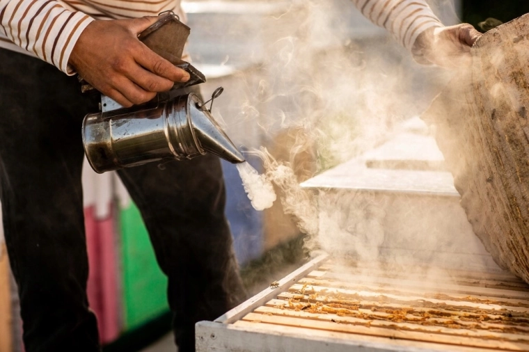 Skórzany miech zapewnia płynne dawkowanie powietrza i stabilny strumień dymu, co umożliwia spokojniejszą i bezpieczniejszą pracę z pszczołami.