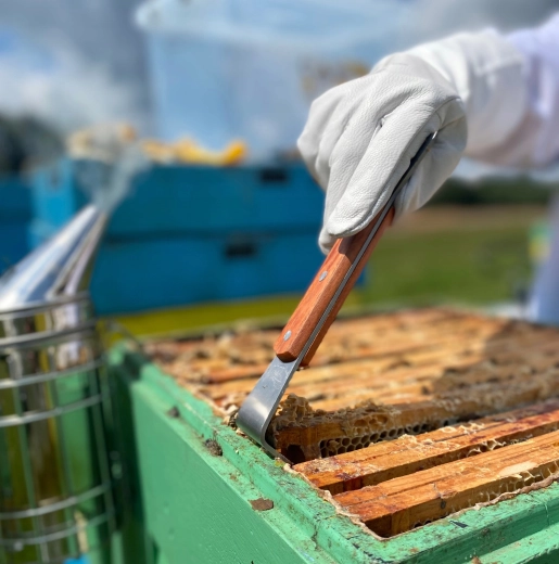 Stal nierdzewna jest odporna na korozję i łatwa w czyszczeniu, dzięki czemu narzędzie sprawdza się w codziennej pracy w pasiece.