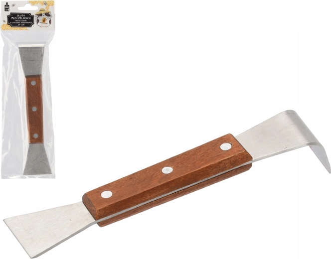 Niezawodne dłuto pszczelarskie o długości 20 cm łączy wytrzymałość stali nierdzewnej z wygodnym chwytem drewnianej rękojeści. Specjalnie wyprofilowany haczyk oraz ostro zakończona krawędź ułatwiają luzowanie i podnoszenie ramek sklejonych propolisem, a także precyzyjne skrobanie i czyszczenie.