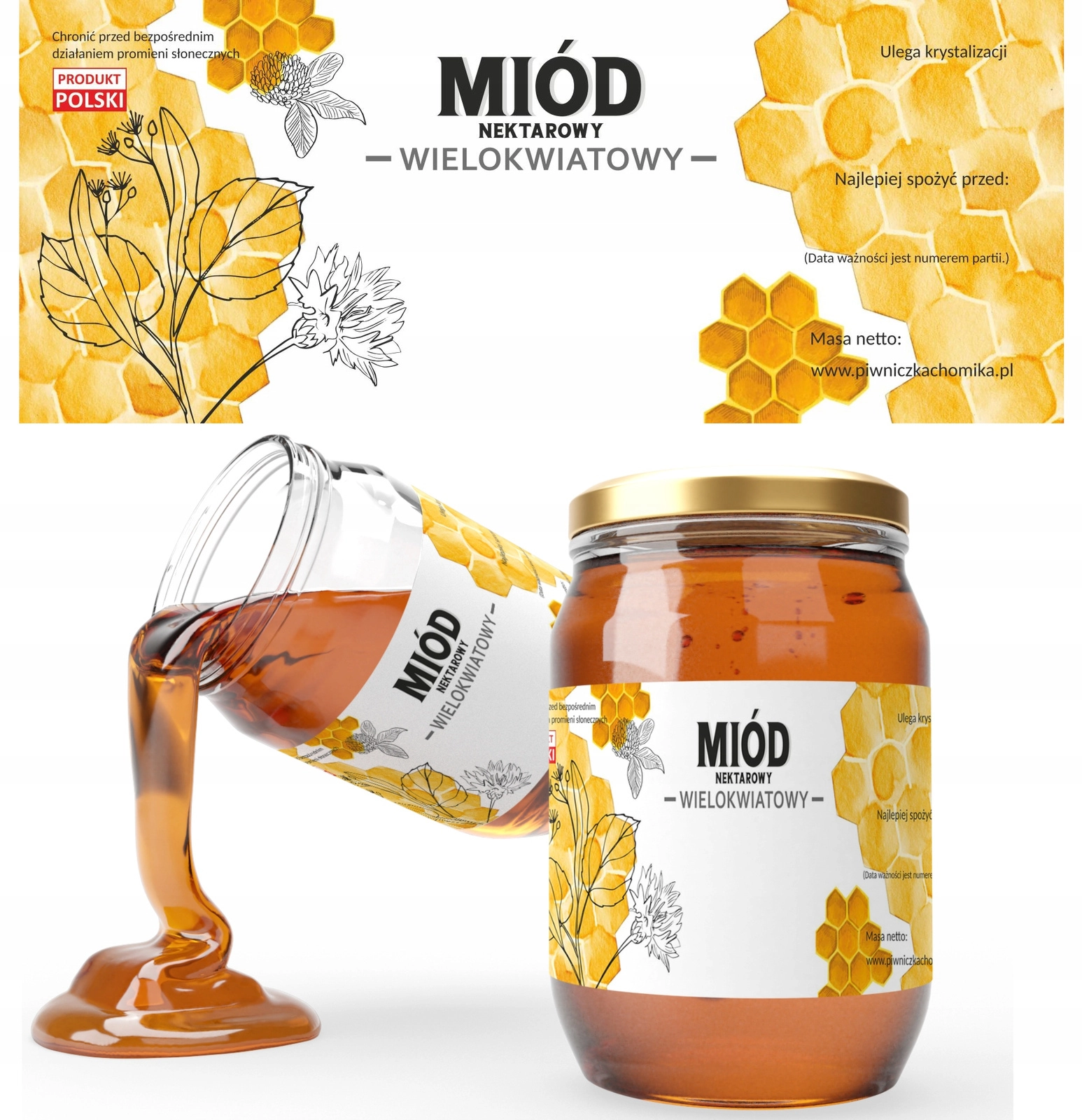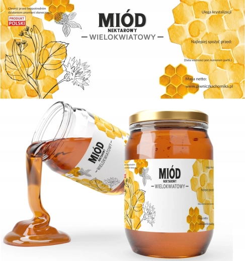 Etykiety ułatwiają identyfikację rodzaju miodu oraz spełnienie wymagań dotyczących oznakowania. Idealne rozwiązanie dla czystego i spójnego znakowania Twoich produktów miodowych.