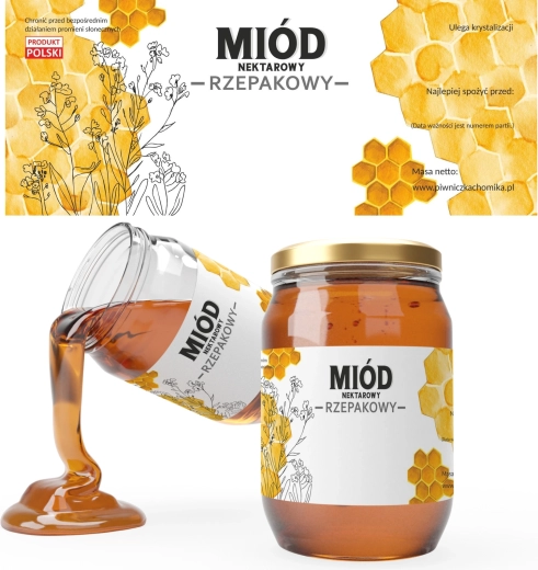 Ten kompletny zestaw etykiet jest idealny dla pszczelarzy i producentów miodu, którzy chcą oznaczać swoje słoiki czytelnie i estetycznie. Etykiety na miód rzepakowy mają uniwersalny wymiar 154 × 60 mm, dzięki czemu dobrze pasują do standardowych słoików z miodem i zapewniają profesjonalną prezentację produktu.