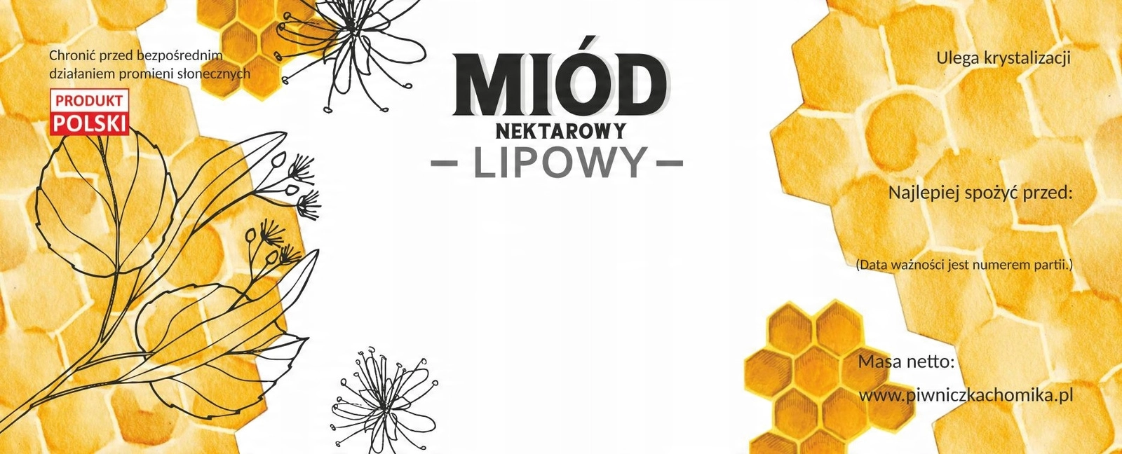 Profesjonalny komplet etykiet przeznaczonych do oznaczania miodu nektarowego – lipowego. Dzięki przejrzystemu miejscu na tekst łatwo zaznaczysz rodzaj miodu oraz datę przydatności do spożycia, co ułatwia identyfikację dla klientów i zwiększa zaufanie do Twojego produktu.