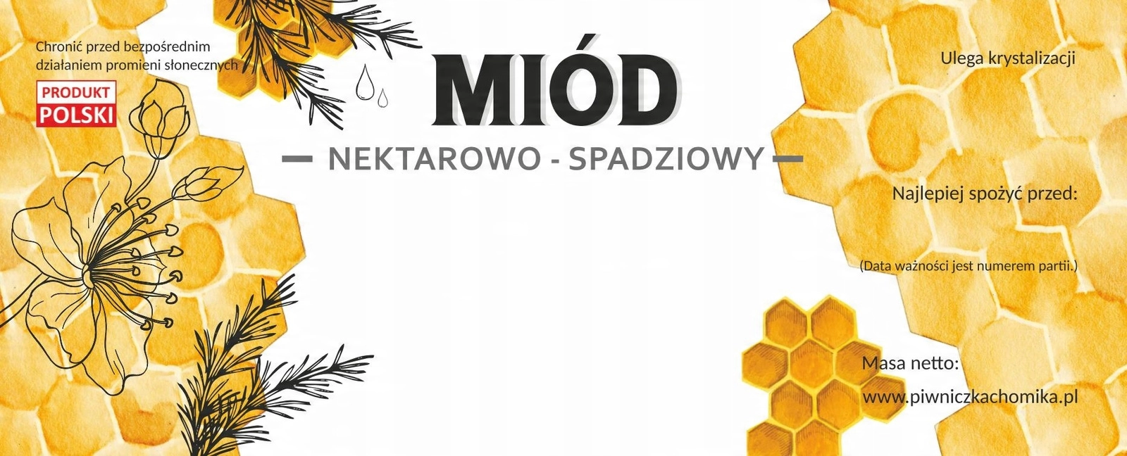 - Jasna identyfikacja produktu: pola na rodzaj miodu i inne dane.