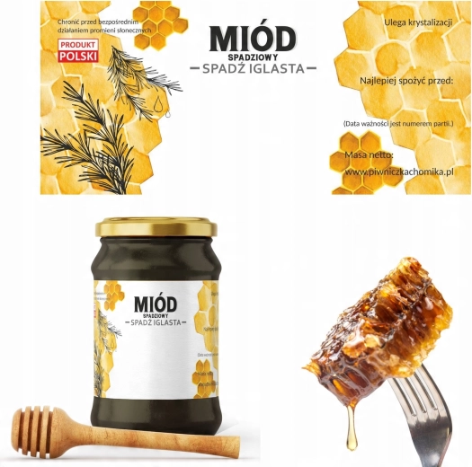 Etykiety na miód – spadziowy, spadź z drzew iglastych