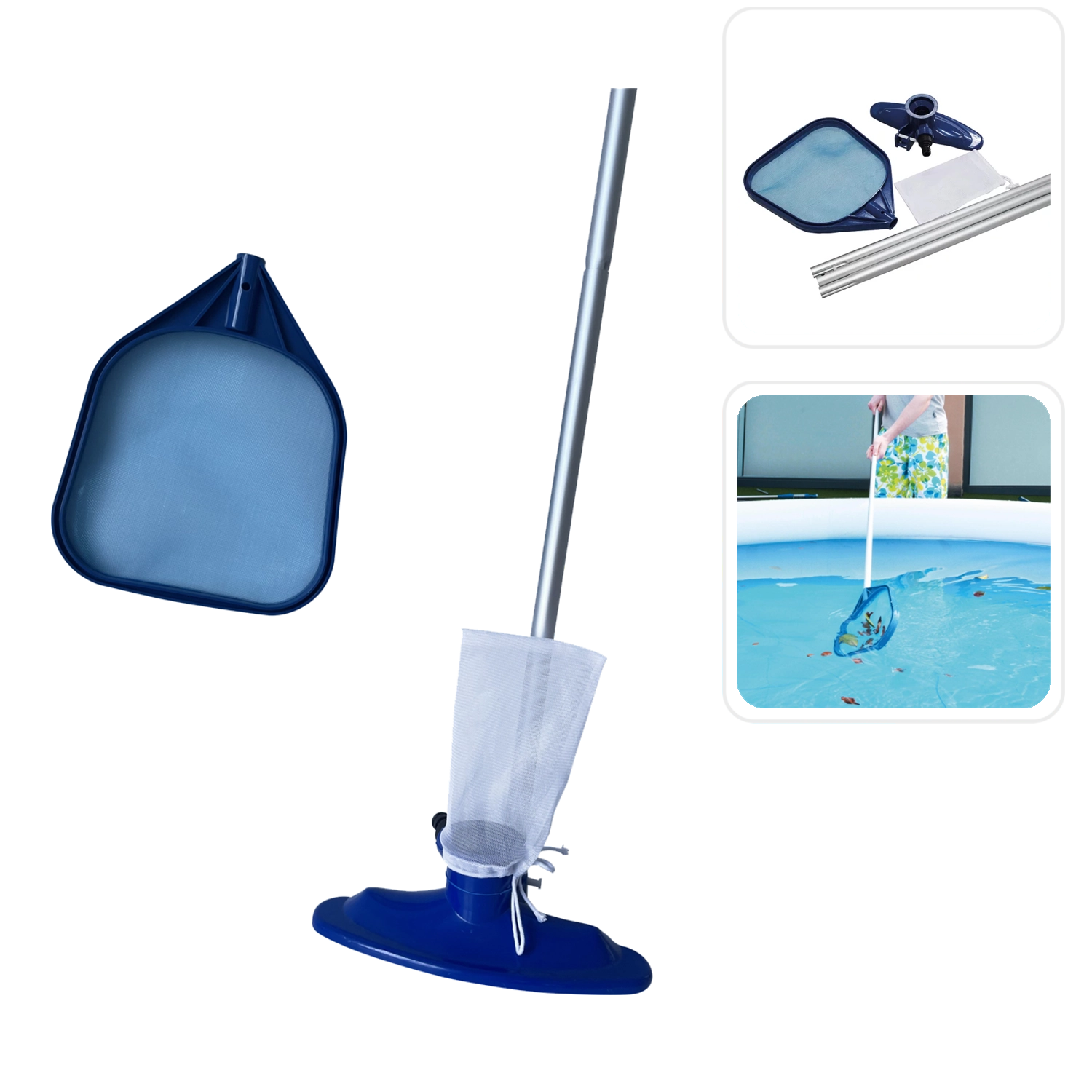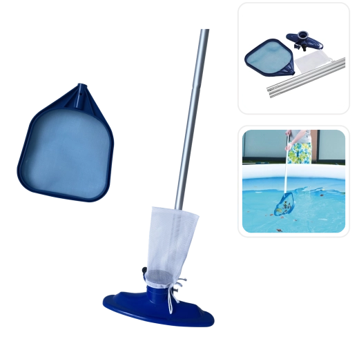 Utrzymuj wodę w basenie krystalicznie czystą dzięki temu praktycznemu zestawowi do czyszczenia. Zawiera lekką aluminiową tyczkę, głowicę odkurzacza do podłączenia do ogrodowego węża 3/4'', wielokrotnego użytku worek filtracyjny oraz siatkę na liście. Idealny do mniejszych basenów naziemnych o średnicy do 3 m. Łatwa obsługa, szybkie rezultaty i skuteczne usuwanie zanieczyszczeń z dna i tafli dla bezproblemowej pielęgnacji basenu.