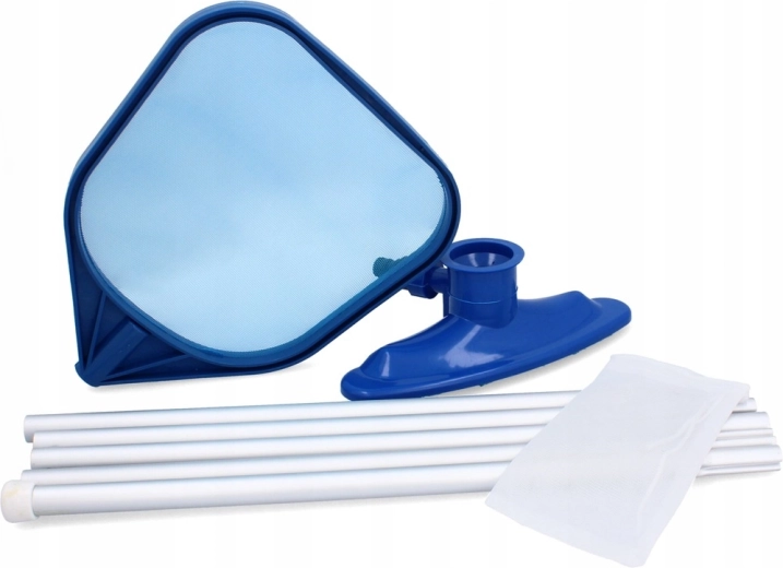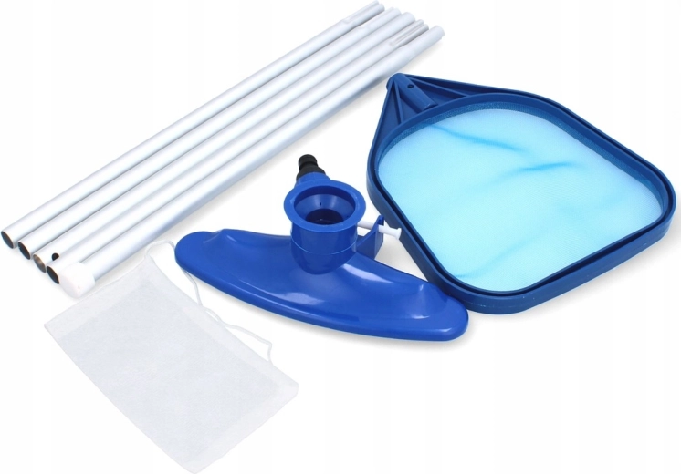 W zestawie znajduje się lekki aluminiowy drążek o zasięgu do 205 cm, siatka powierzchniowa kompatybilna z drążkami o wewnętrznej średnicy 19 mm oraz głowica odkurzacza z wielokrotnie używanym woreczkiem zbierającym, którą łatwo podłączysz do węża 3/4". Zestaw jest odpowiedni do basenów rozporowych i stelażowych o konstrukcji okrągłej i prostokątnej.