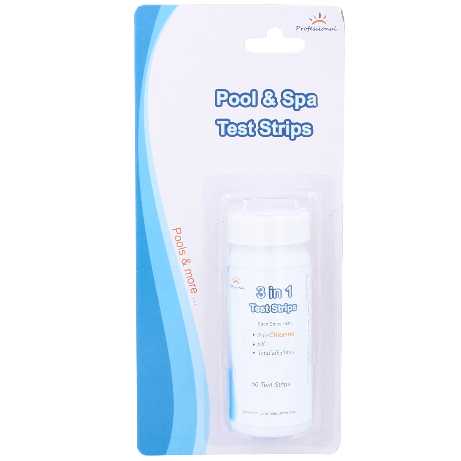 Zakręcana buteleczka z 50 paskami testowymi wystarczy na długi okres regularnych kontroli w basenie i jacuzzi.