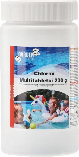 Chlorowe multitabletki CHLOROX o masie 200 g to idealny wybór do regularnej dezynfekcji wody w ogrodowych i prywatnych basenach. Jedna aplikacja działa przez 5–7 dni i pomaga utrzymać wodę czystą, przejrzystą i wolną od niepożądanych mikroorganizmów. Tabletki są proste w użyciu – wystarczy włożyć je do pływaka lub skimmera i włączyć pompę cyrkulacyjną.