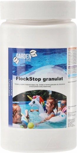 FlockStop granulat to niezawodny i łatwy w dozowaniu środek do uzyskania krystalicznie czystej wody w basenach prywatnych i publicznych. Dzięki szybko rozpuszczalnej formule efektywnie skupia mikroskopijne zanieczyszczenia (koloidy, zmętnienia), które następnie łatwo wyłapuje filtr piaskowy. Regularne stosowanie podnosi komfort kąpieli i ogranicza zużycie środków dezynfekcyjnych.